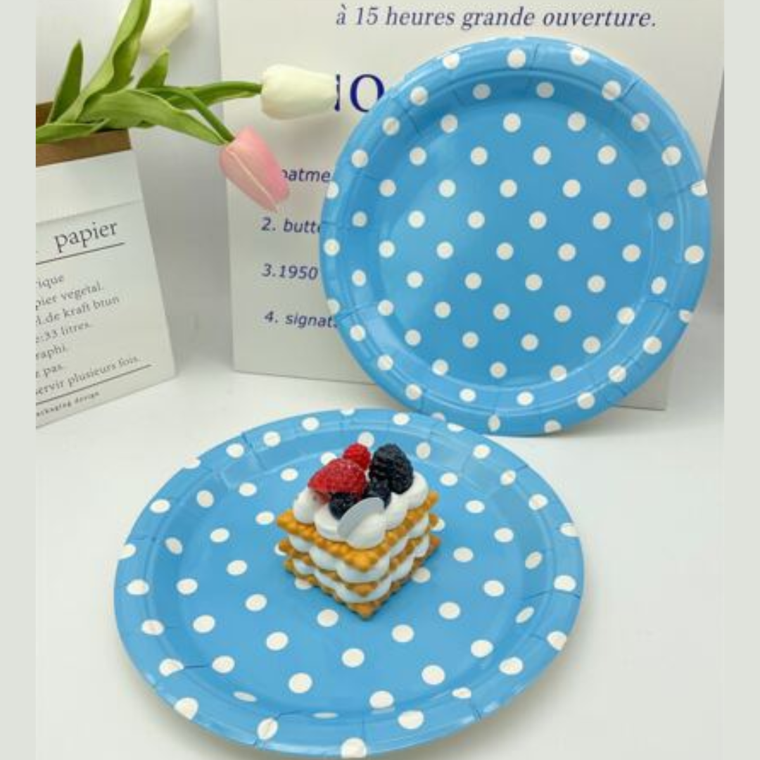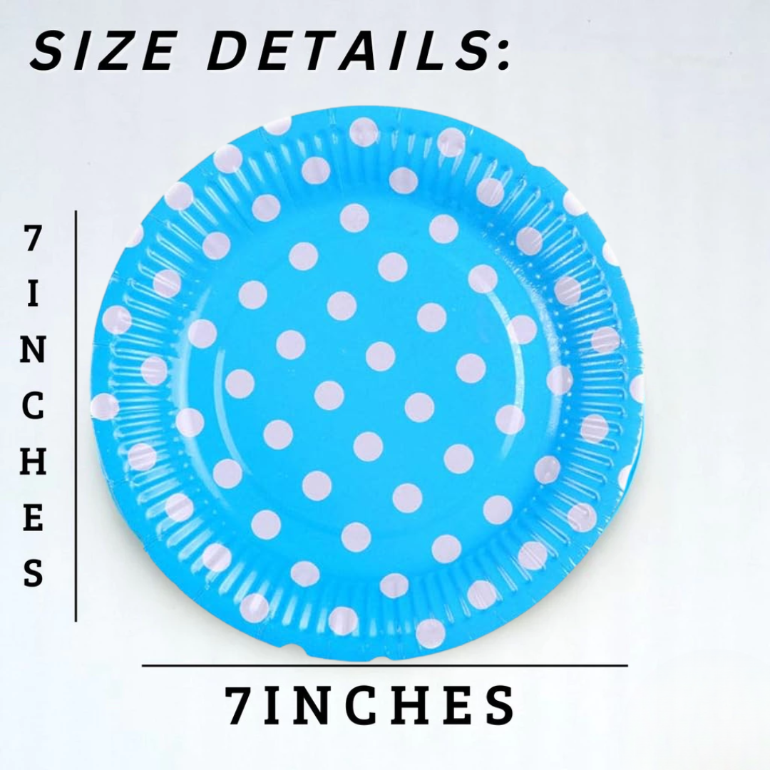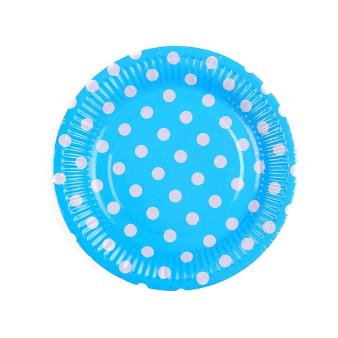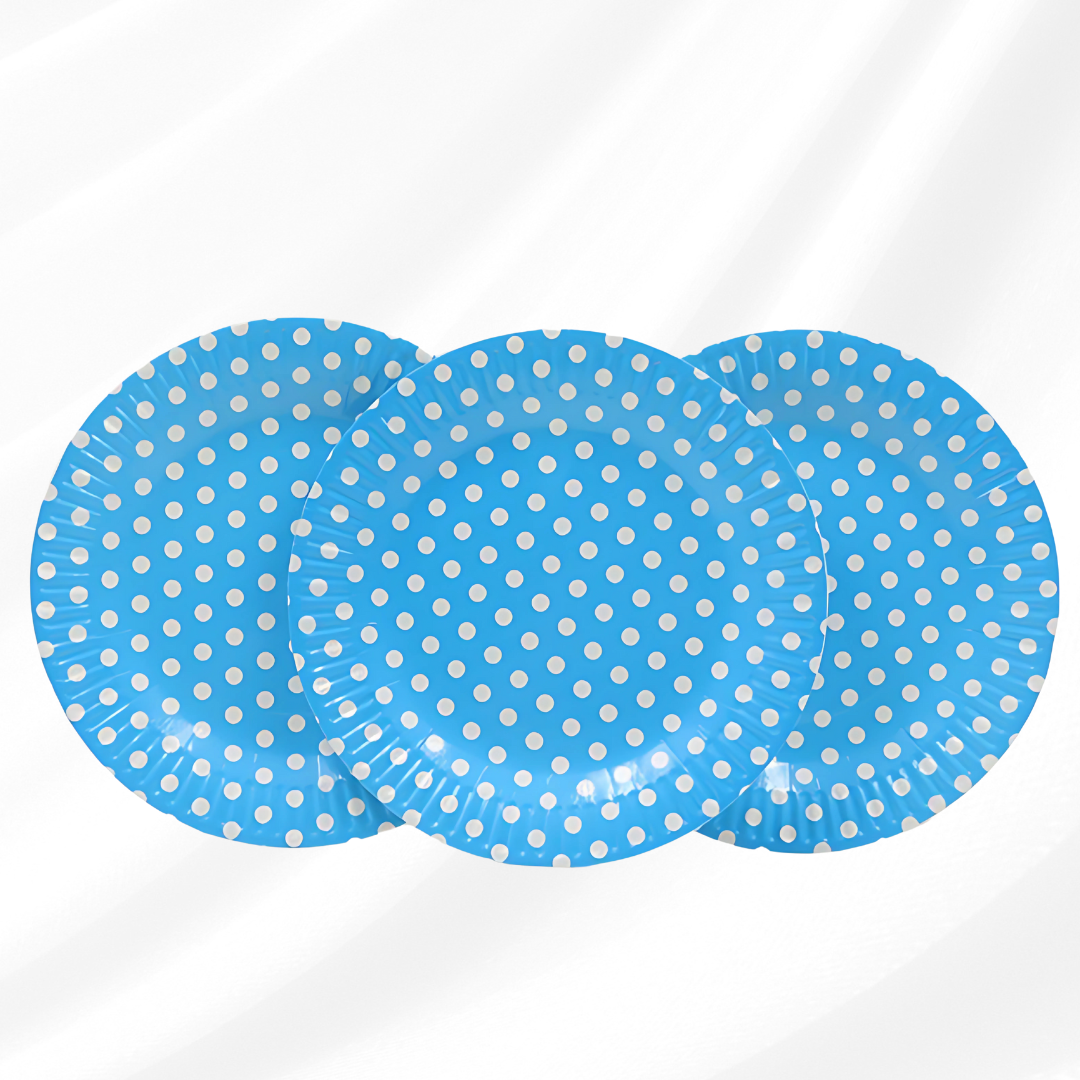 Blue Round Party Paper Plate w/ White Polka Dot - 10PC