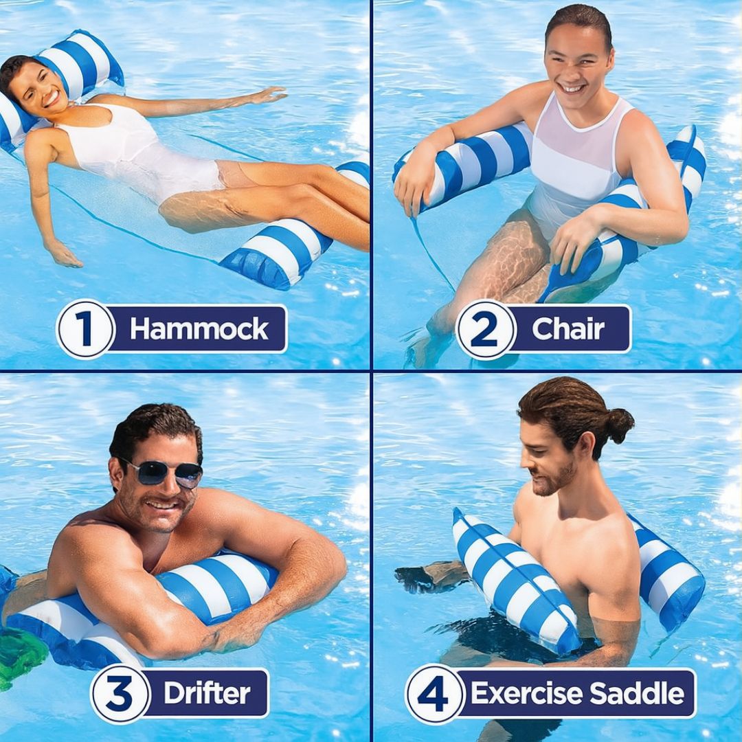 Pool Floats 4 in 1 Multipurpose: This multi functional pool float can be used as a pool hammock, lounge chair, drifter, or saddle, among other uses. You can change the posture of the water hammock as needed to meet your various needs. The pool tools adult brings you a pleasant experience of various enjoyments, you can easily relax in the water, when on vacation or travelling, very suitable for use in swimming pools, beaches, oceans, lakes, etc.