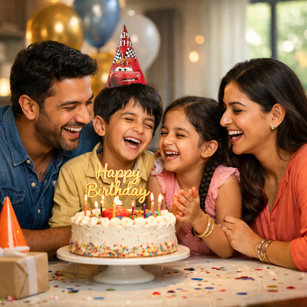 EXCITING RACING CAR THEME DESIGN – Fun and vibrant birthday caps featuring dynamic racing car graphics that boys love. Perfect for creating a thrilling race-track party atmosphere for kids’ birthdays and car-themed celebrations.