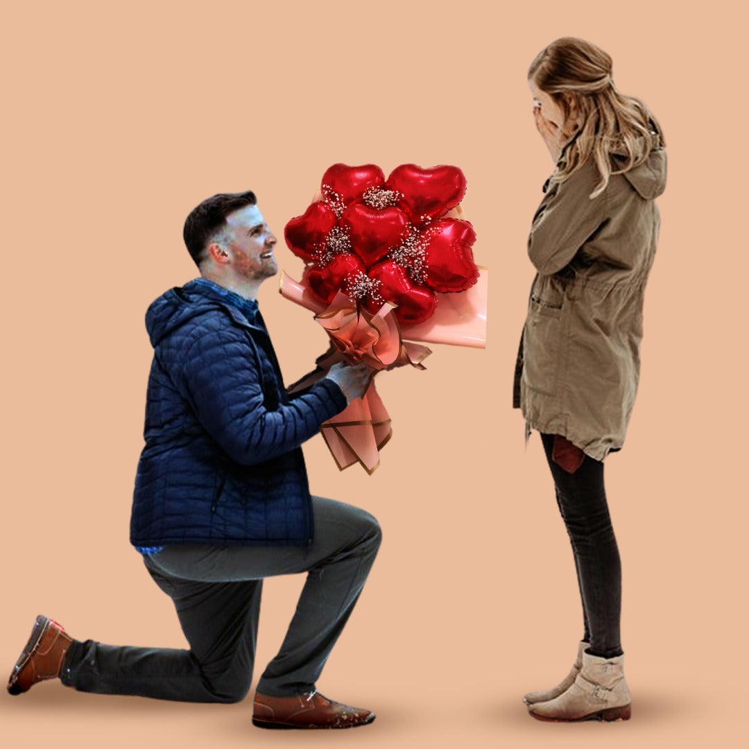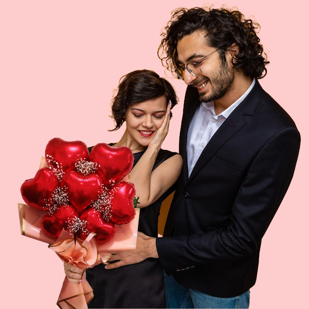 Red Heart Shape Foil Balloon Set w/ Gymsum Flowers - Air Filled - 10 inches - 7PC