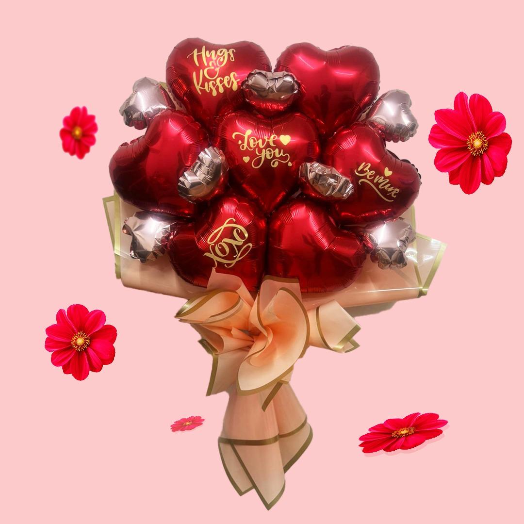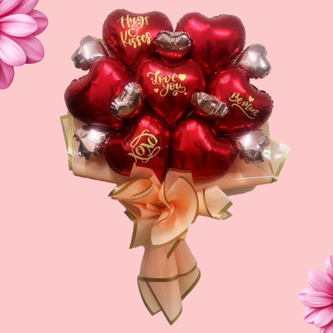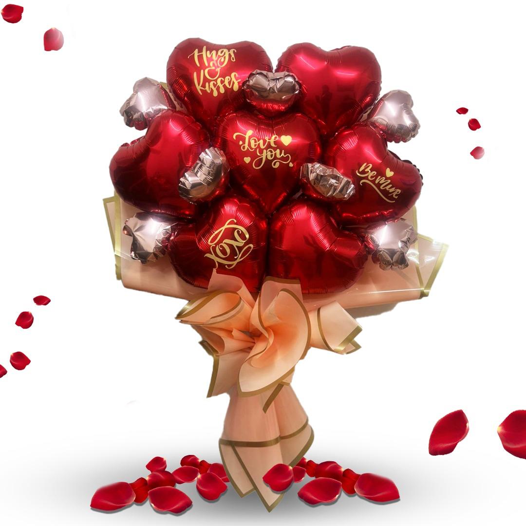 Red & Rose Gold Love You Text Foil Balloon Bouquet - 3PC