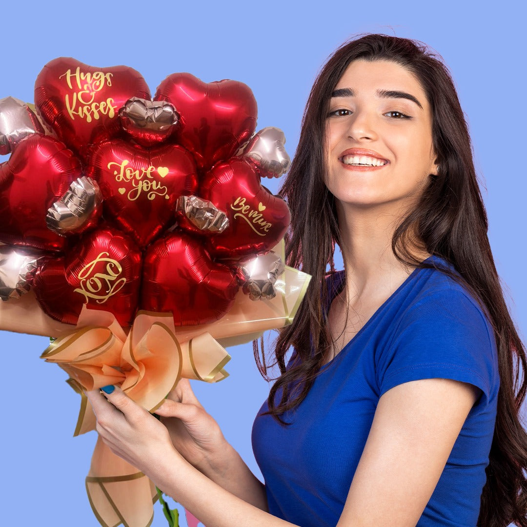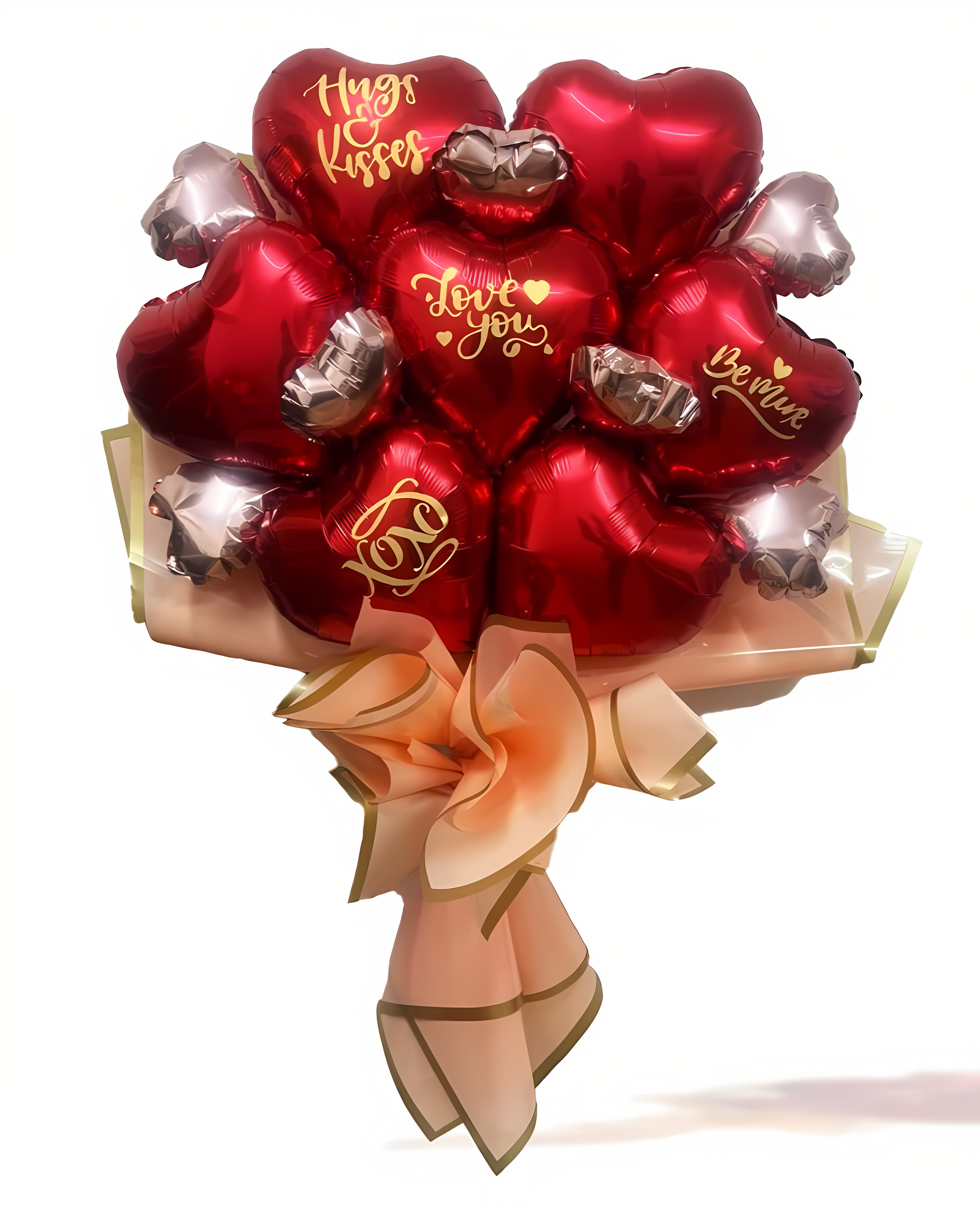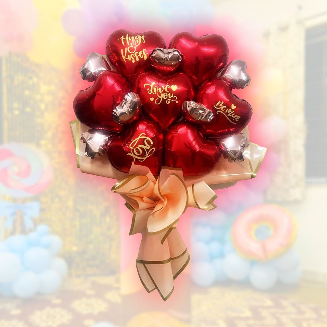 Red & Rose Gold Love You Text Foil Balloon Bouquet - 3PC