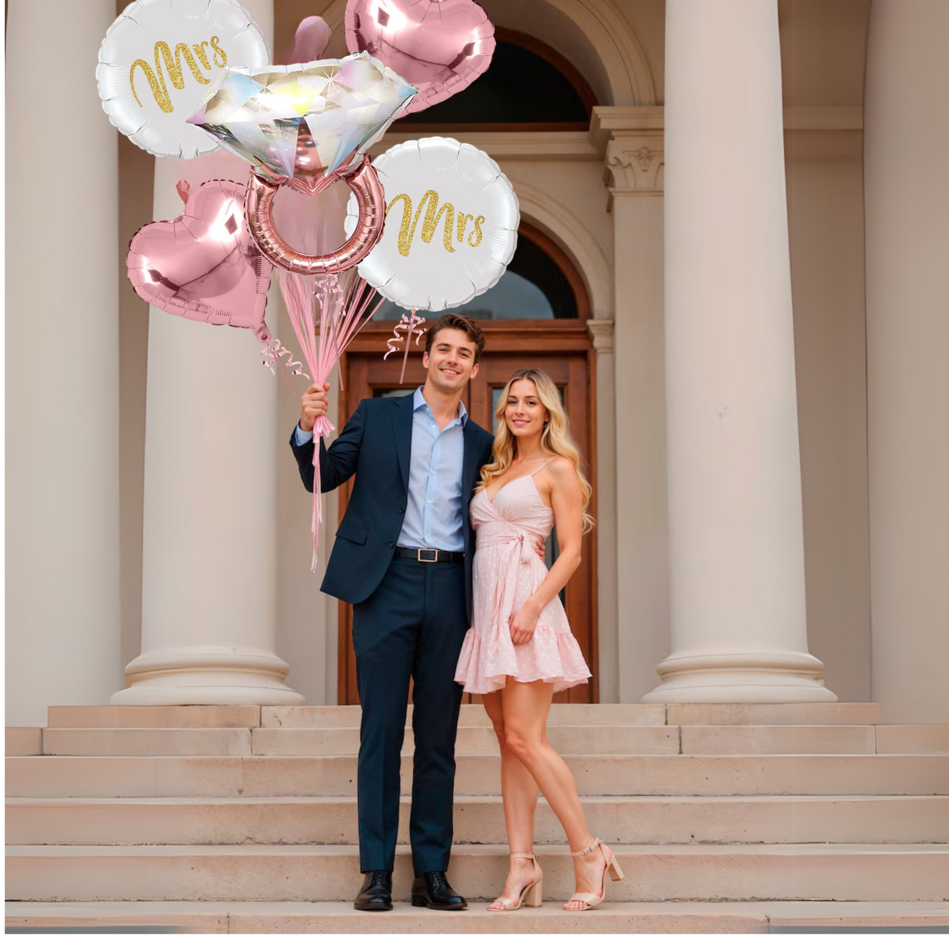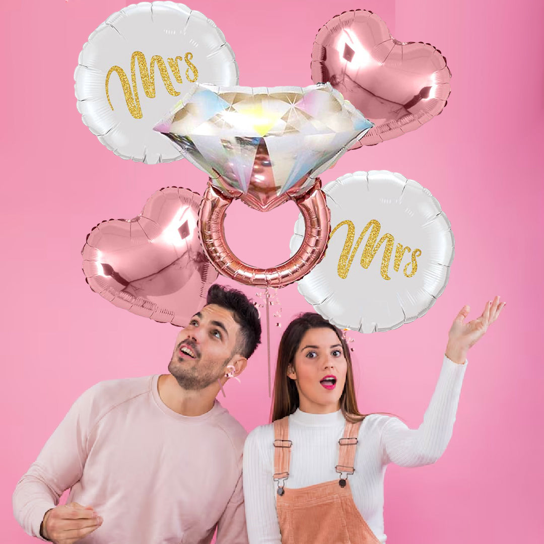High Quality Foil Balloons: Our Ring Foil Balloon Set includes 5 high-quality balloons shaped like dazzling diamond rings. These balloons are made from durable, eco-friendly foil that retains helium well and stays inflated for hours. The strong, leak-proof material ensures they won’t easily pop or deflate, making them perfect for both indoor and outdoor events like engagement parties, bridal showers, or bachelorette celebrations.