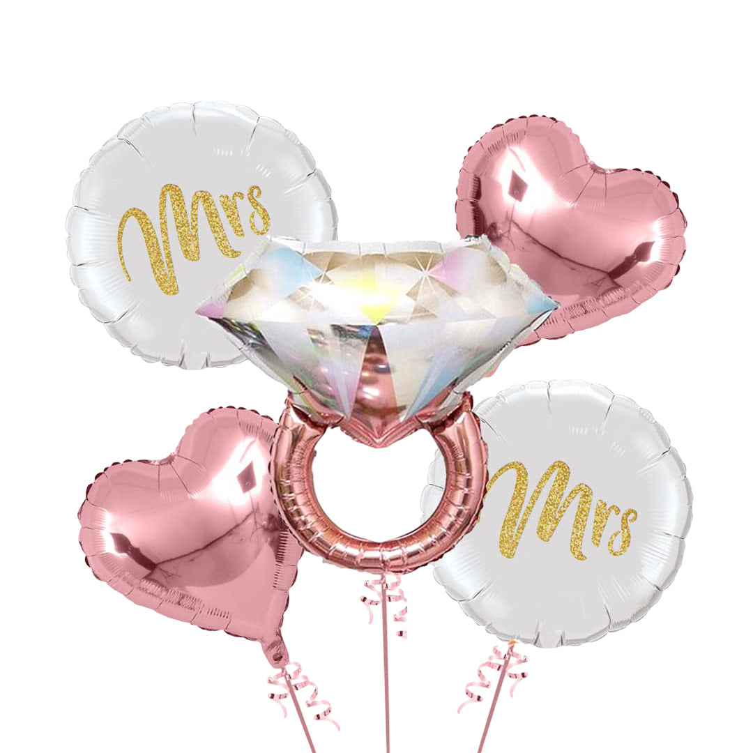 Bachorlette Party Silver & Pink Ring Balloon Set w/ Mr &Mrs Balloon - 5PC