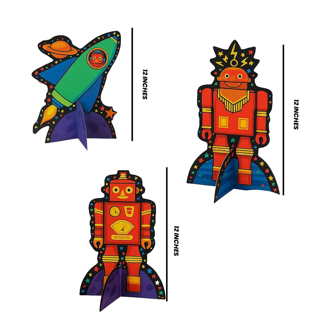 A Robot World Right in the Middle of Your Table: The PARTY BOTS CENTERPIECE turns any space into a robot zone. With its bold prints, it creates a small scene full of character. Whether used on a snack table or display shelf, it draws attention and helps bring your robot theme to life.
