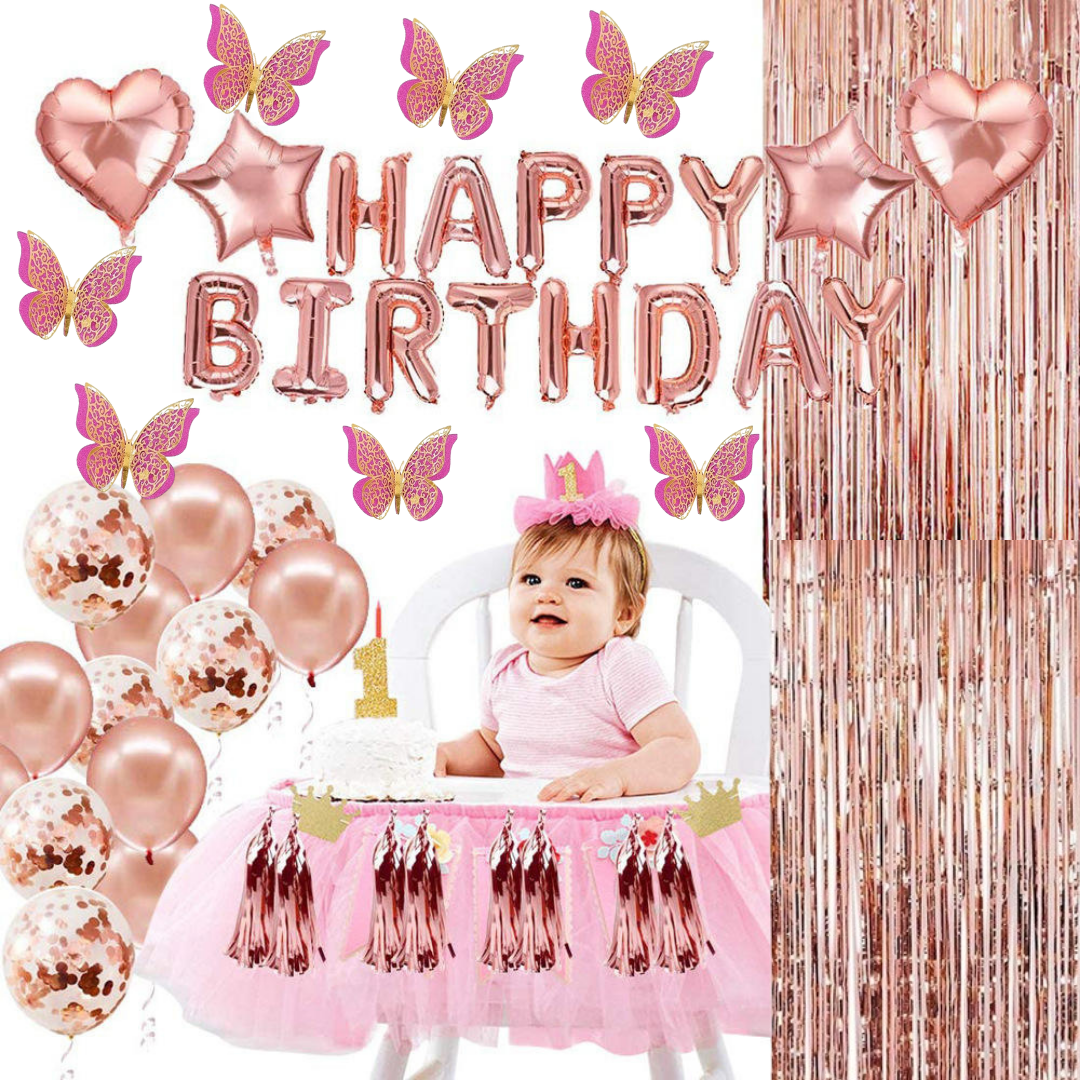 Celebrate your little girl's birthday in style with our Rose Gold Birthday Decoration Combo pack! This pack includes 44 items to make decorating a breeze.