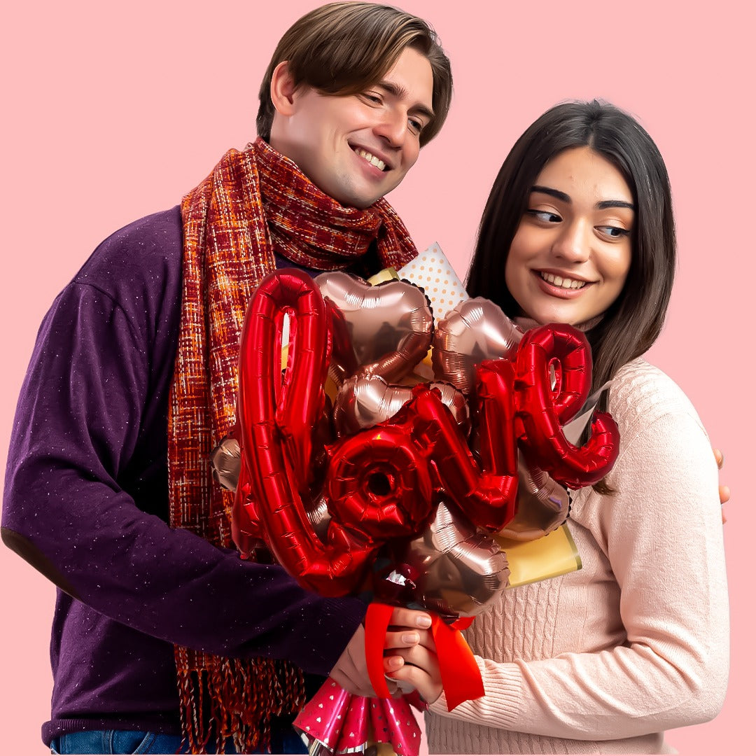 Elevate the romance with our set of 8 Rose Gold Heart Shaped Balloons, each adorned with a vibrant red "Love" design. These balloons are perfect for anniversaries, weddings, or any celebration of love. Made of high-quality materials for long-lasting use. Bring love to new heights!