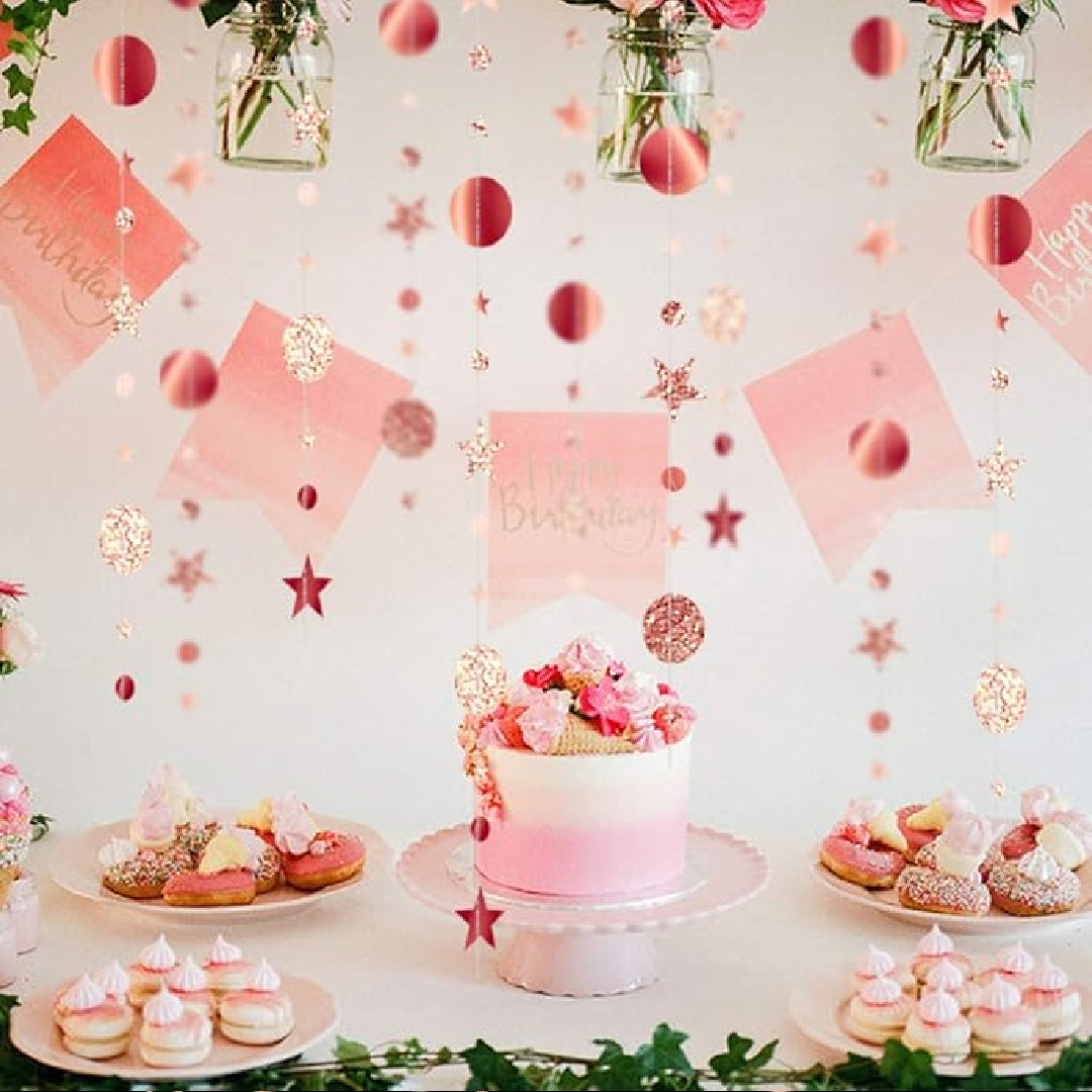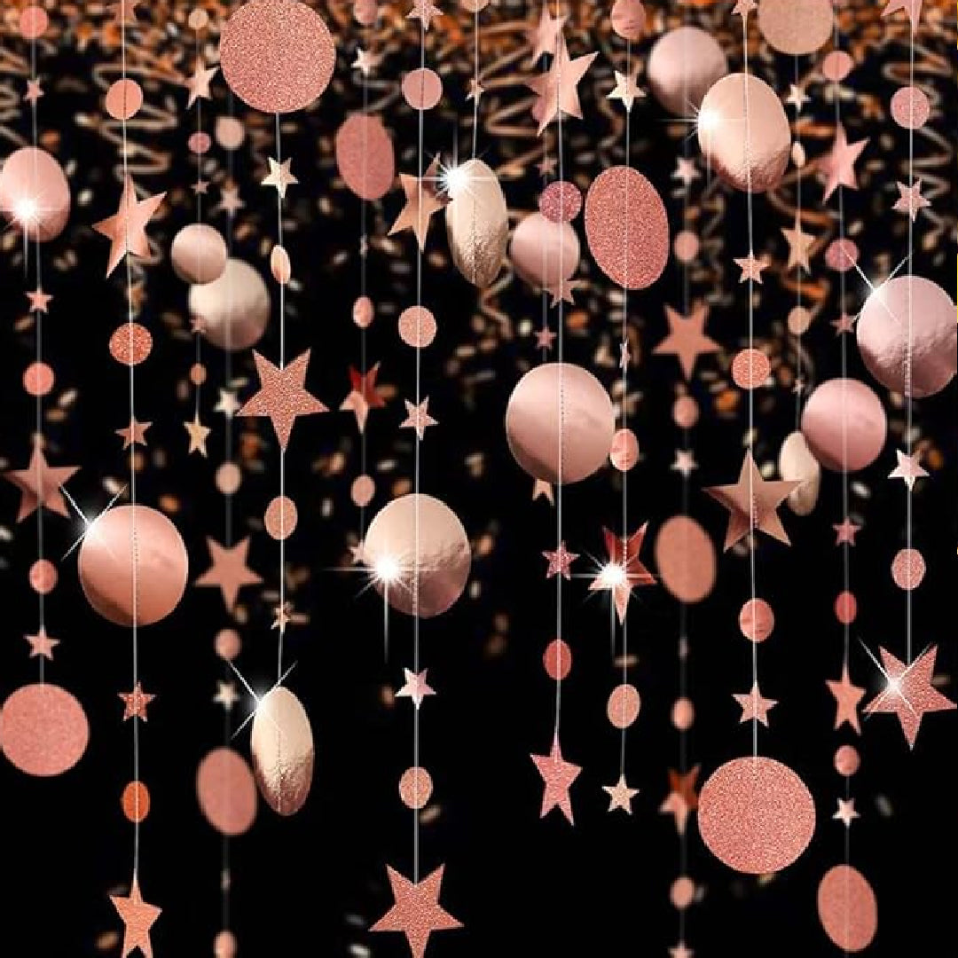 Rose Gold Star Garland Party Decorations: Add charm to star party decor with glittering gold star garland decorations These decorations are perfect for graduations sweet 16s star and moon parties or galaxy themed events they are lightweight and easy to hang to enhance any twinkle twinkle little star party theme.