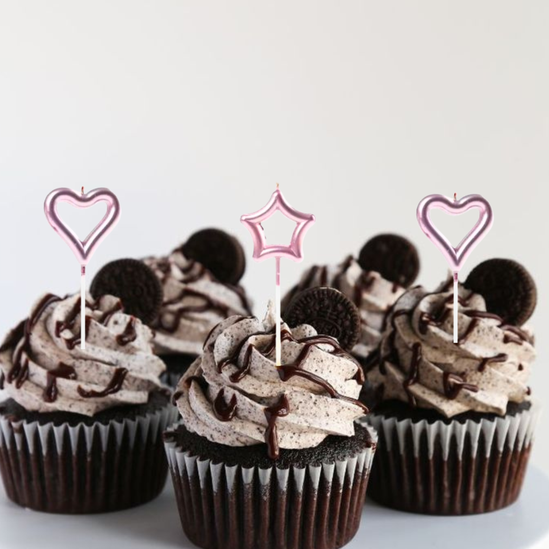 CAKE DECORATION :Add some sparkle to a cake's design with these Rose Pink Heart & Star Shaped Stick Candles. You can pair this with other candles to create any design you need. Easy to insert & light up.
