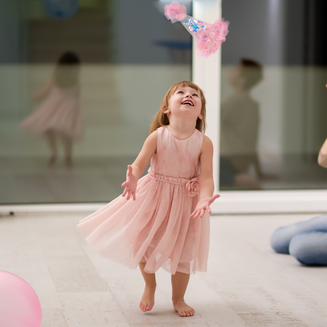 Pink Transparent Party Paper Hat w/ Multicolor Pom Pom - 1PC
