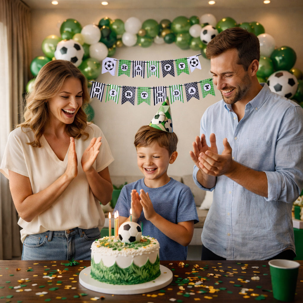 SOCCER THEME BANNER: Score big on style and excitement at your soccer-themed event with our Soccer Bunting Banner. Whether you're hosting a soccer birthday, football-themed house party, a sports-themed gathering, or a victory celebration, this banner adds a sporty flair that will have everyone cheering.