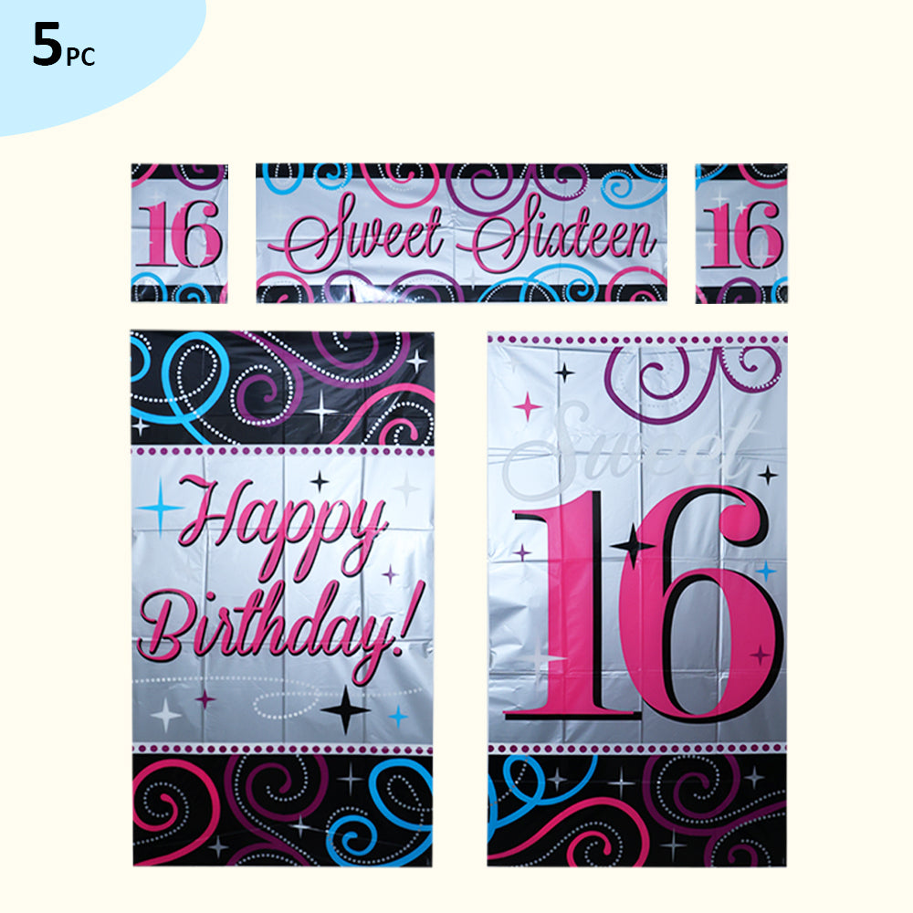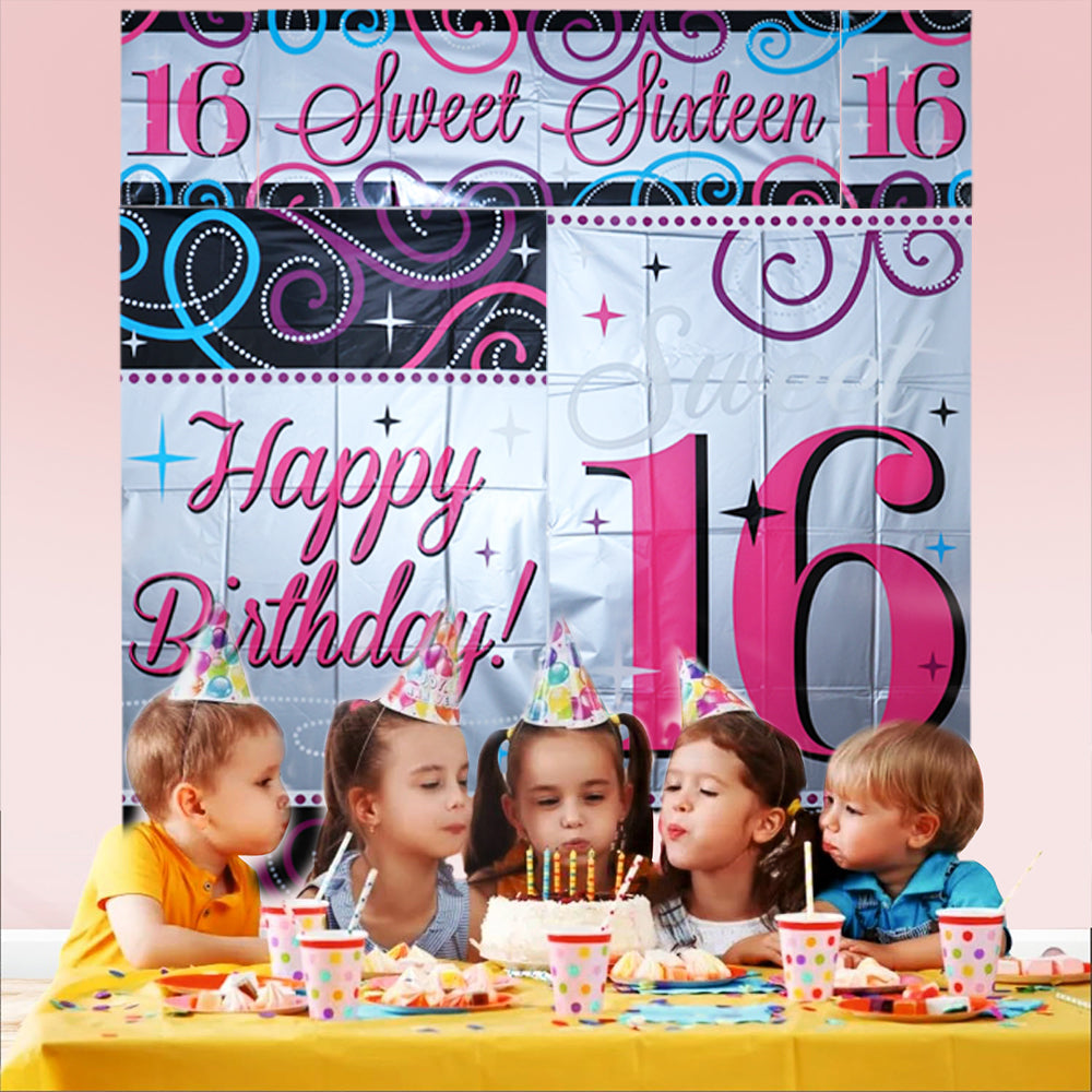 Vibrant & Glamorous Design: Features a dazzling mix of pink, silver, black, and blue with swirls, sparkles, and bold “Sweet Sixteen” graphics that pop in photos and real life.