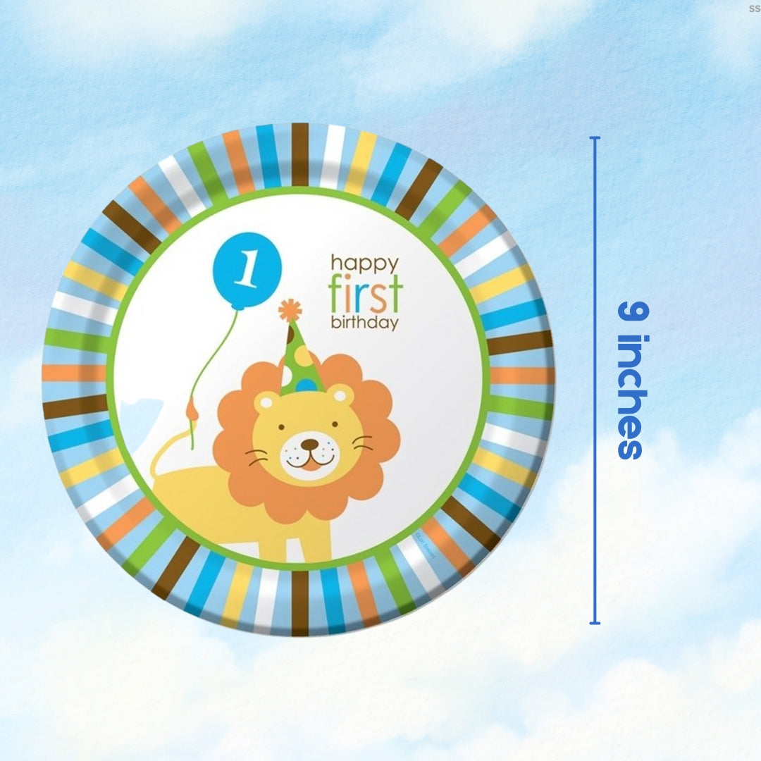 1st Birthday Jungle Animal Paper Plates - 9 inches - 8PC