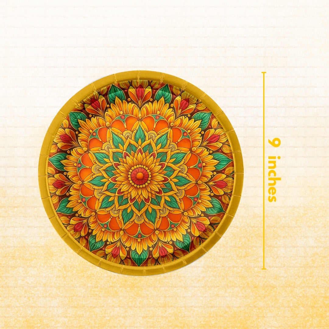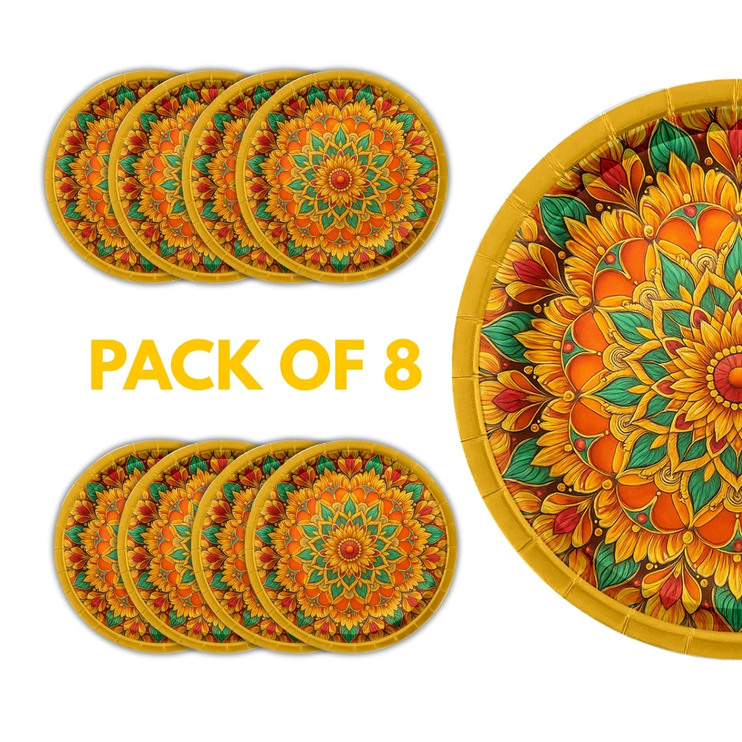 Traditional Festival Party Paper Plates - 9 inches - 8PC