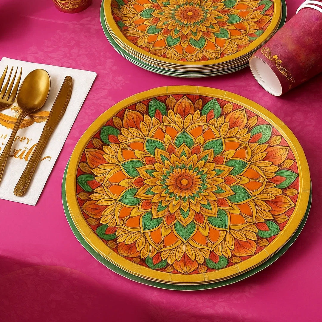 Perfect for All Indian Celebrations: Whether it's a religious puja, festive party, or cultural gathering, these traditional-themed plates bring color, joy, and ease to your celebrations—saving time on cleanup while maintaining a festive spirit.