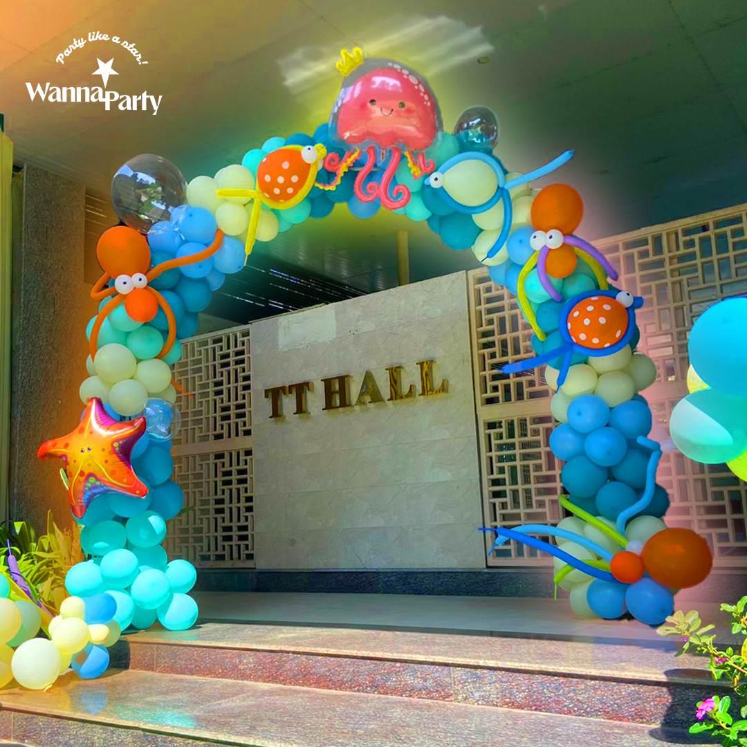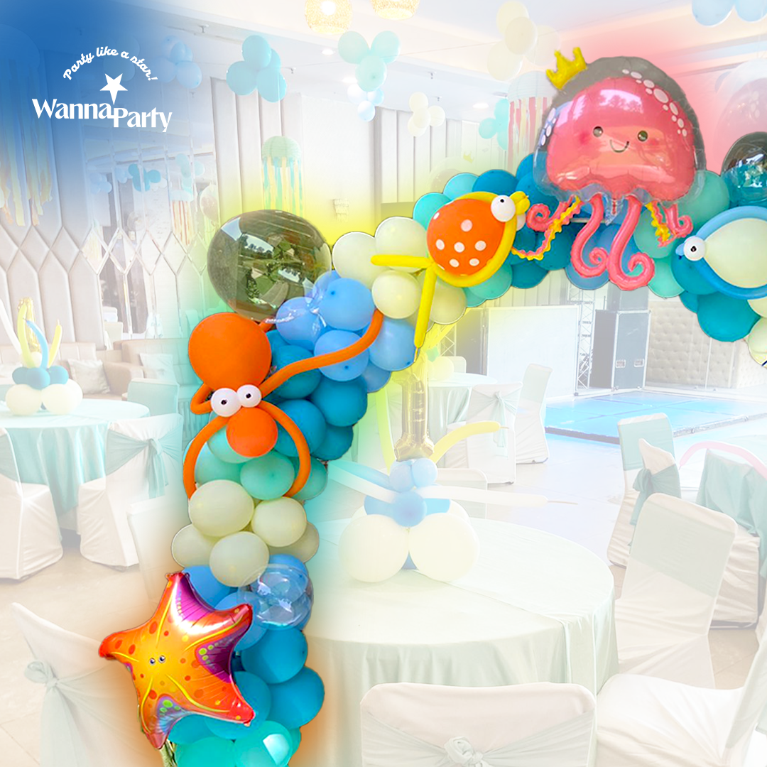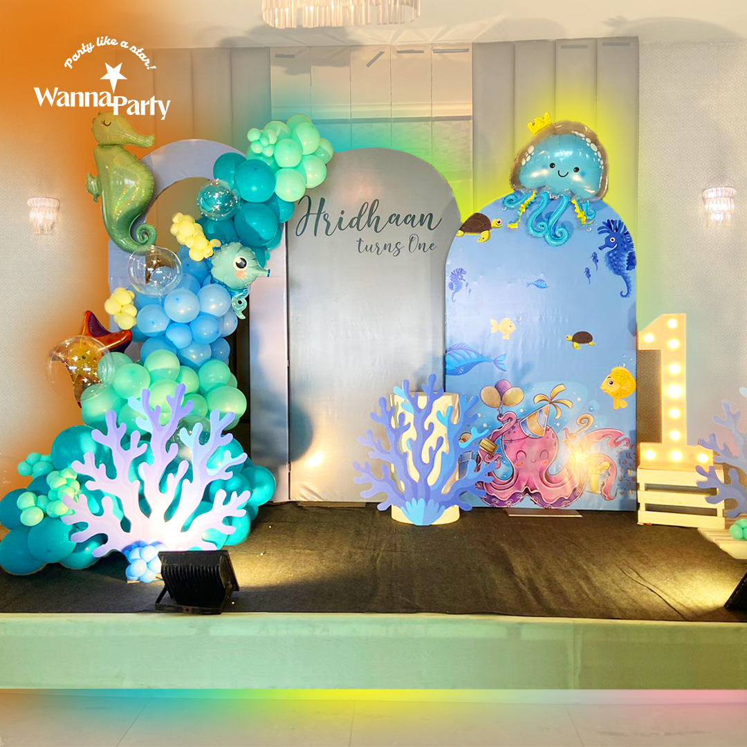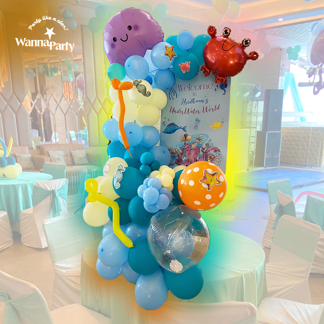 4.) Includes Underwater theme Eisel Stand with customised print wrapped with Balloons.
