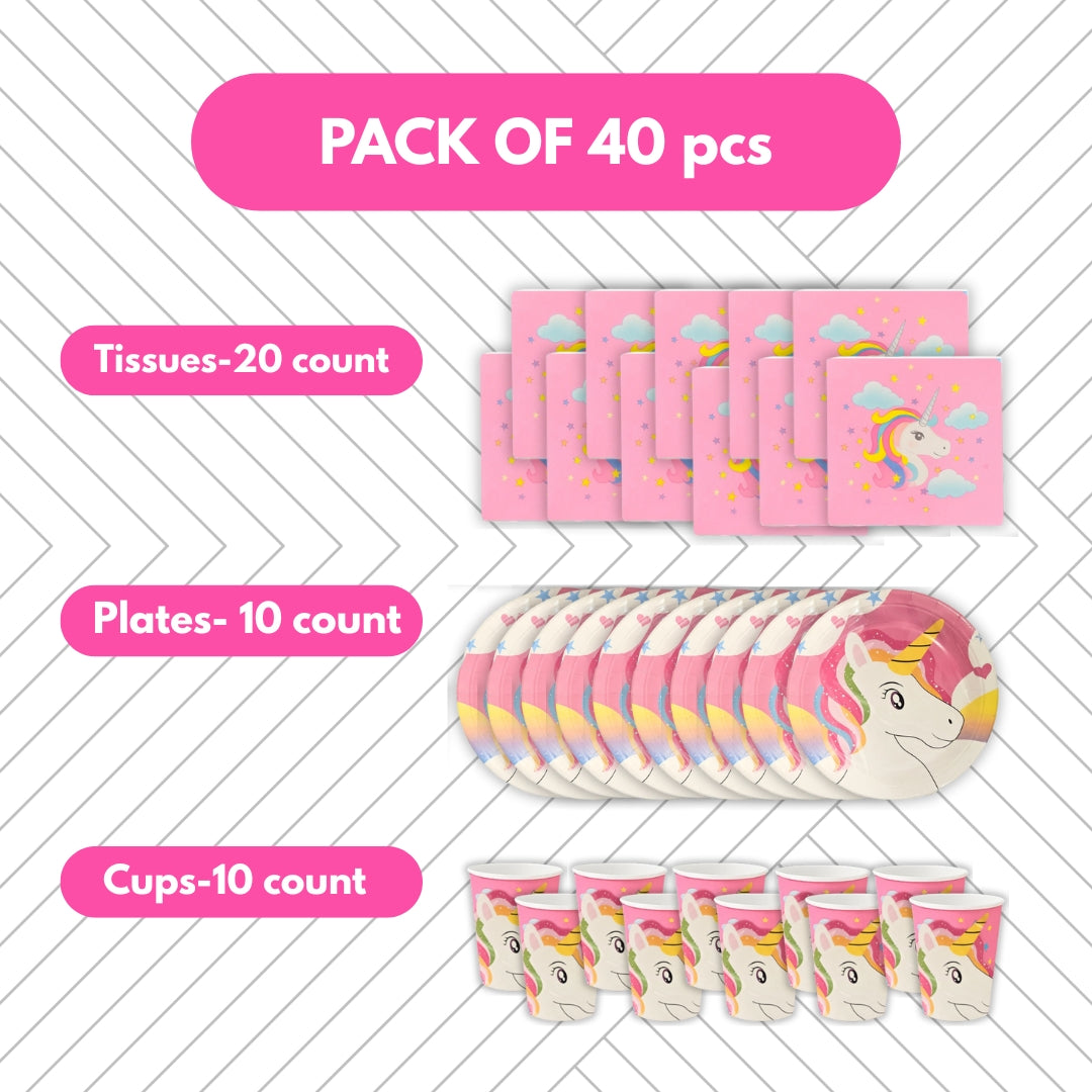 Unicorn Theme Tableware Combo w Plates, Cups & Napkins - 40PC