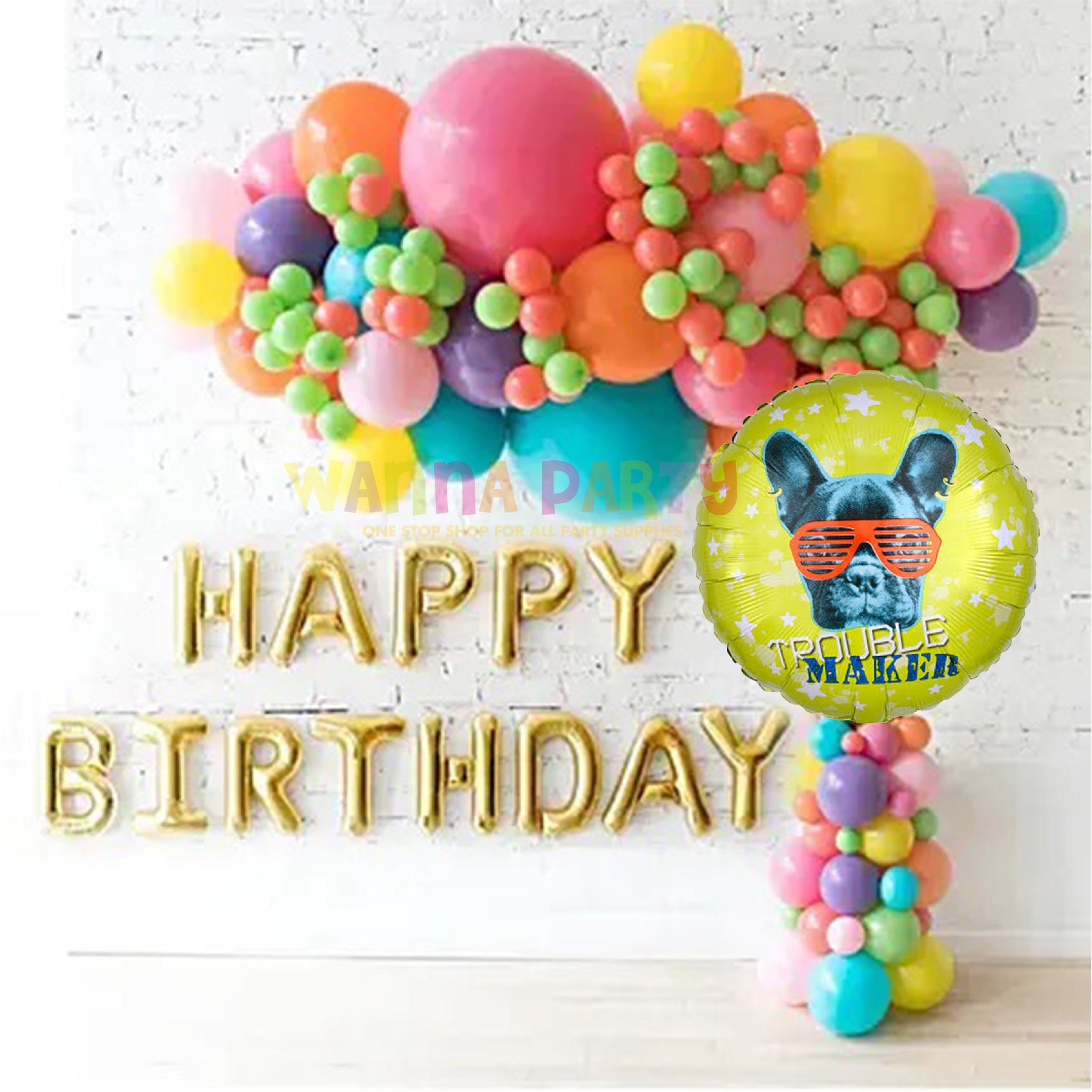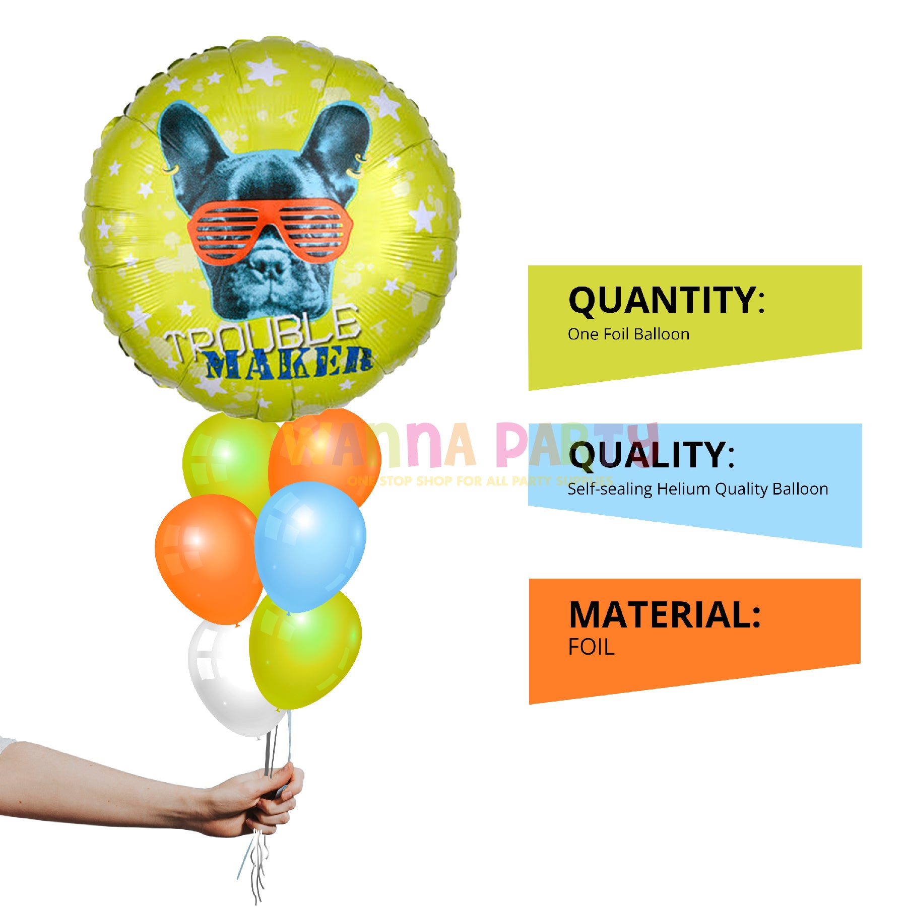 Fun & Unique Design: Add a dose of humor and charm to your party with this quirky 18-inch “Pug Trouble Maker” balloon from the Epic Game On Party collection. Featuring a mischievous pug with gaming vibes, it’s the perfect attention-grabber for birthdays, gaming nights, or fun celebrations. Its eye-catching design brings instant smiles, making it a favorite among kids and adults who love pets and parties.