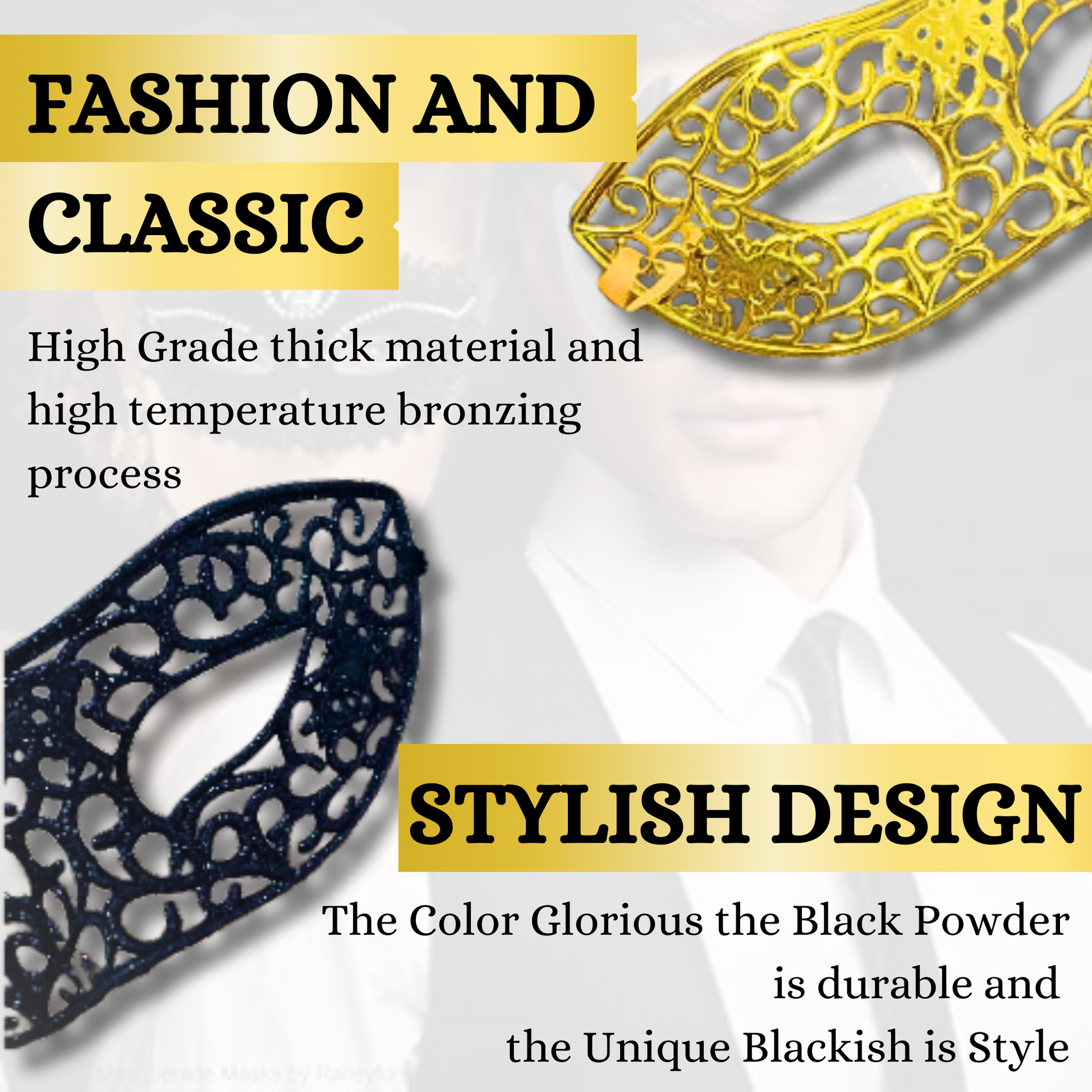 Elegant and Vintage Design: Each mask is designed with a vintage Venetian style, featuring intricate detailing and a sophisticated look perfect for masquerade balls and costume parties.