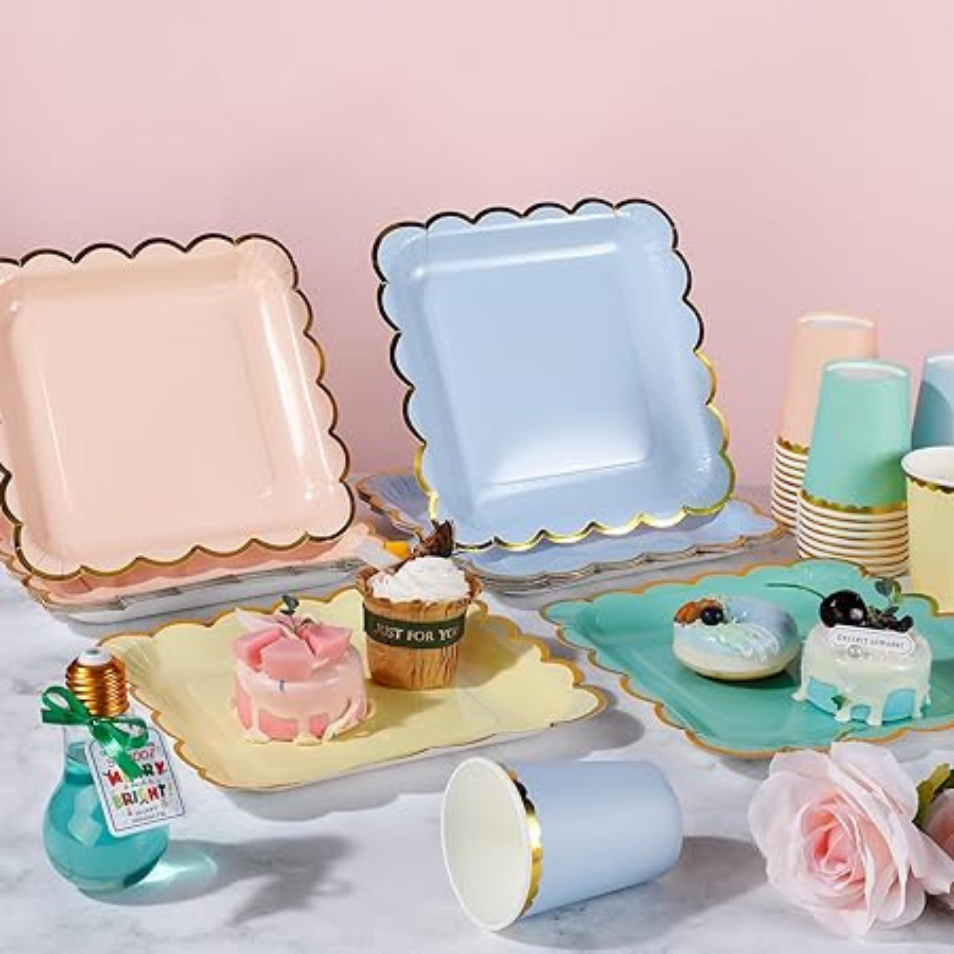 Elegant Gold Accents: Each item features elegant gold details, adding a touch of sophistication and luxury to your party, perfect for birthdays, weddings, or other celebratory occasions.