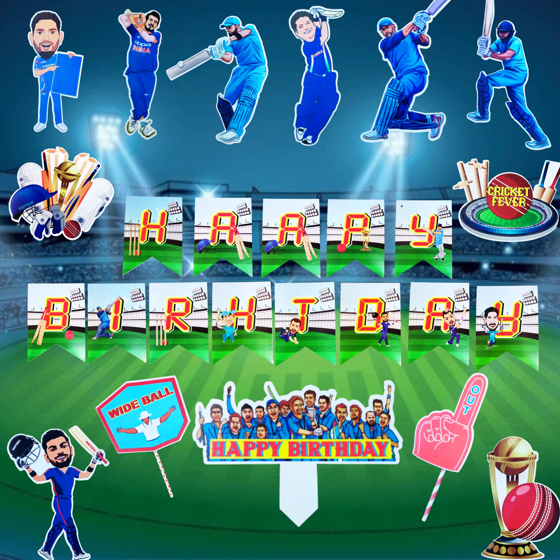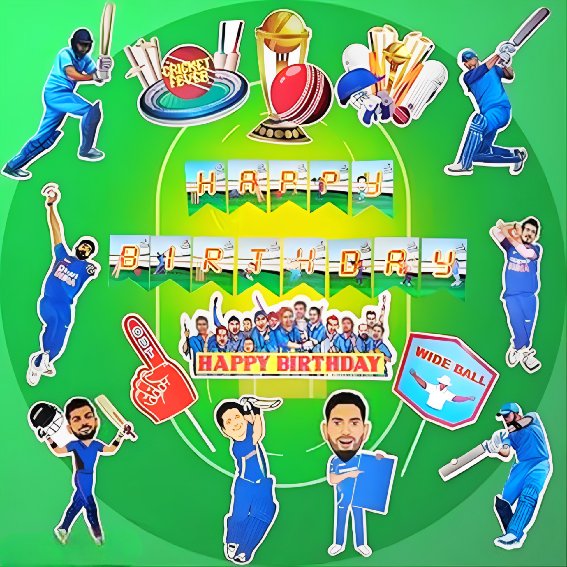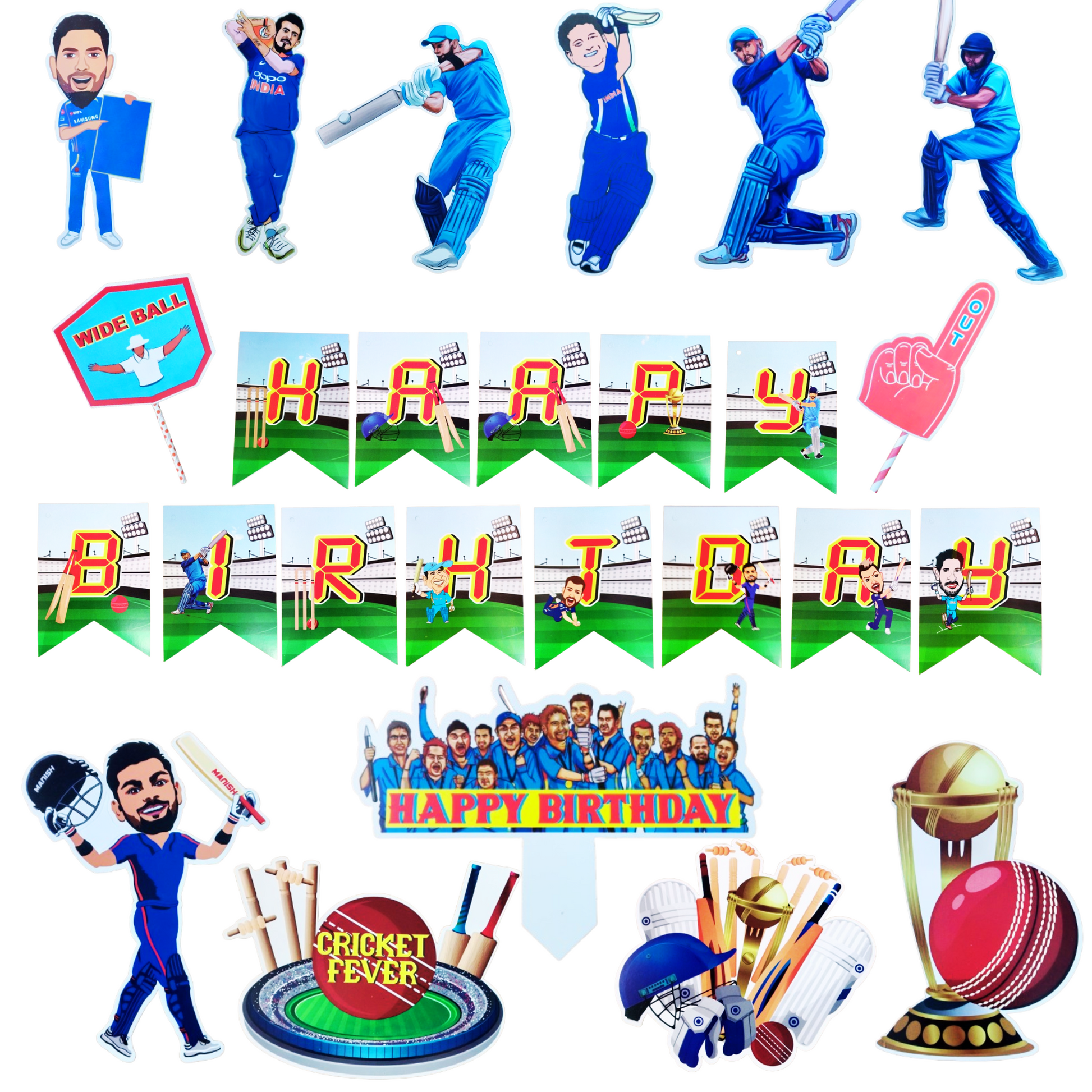 Cricket Theme Happy Birthday Decor w/ Cricketer Cutouts Combo - Set of 81PC