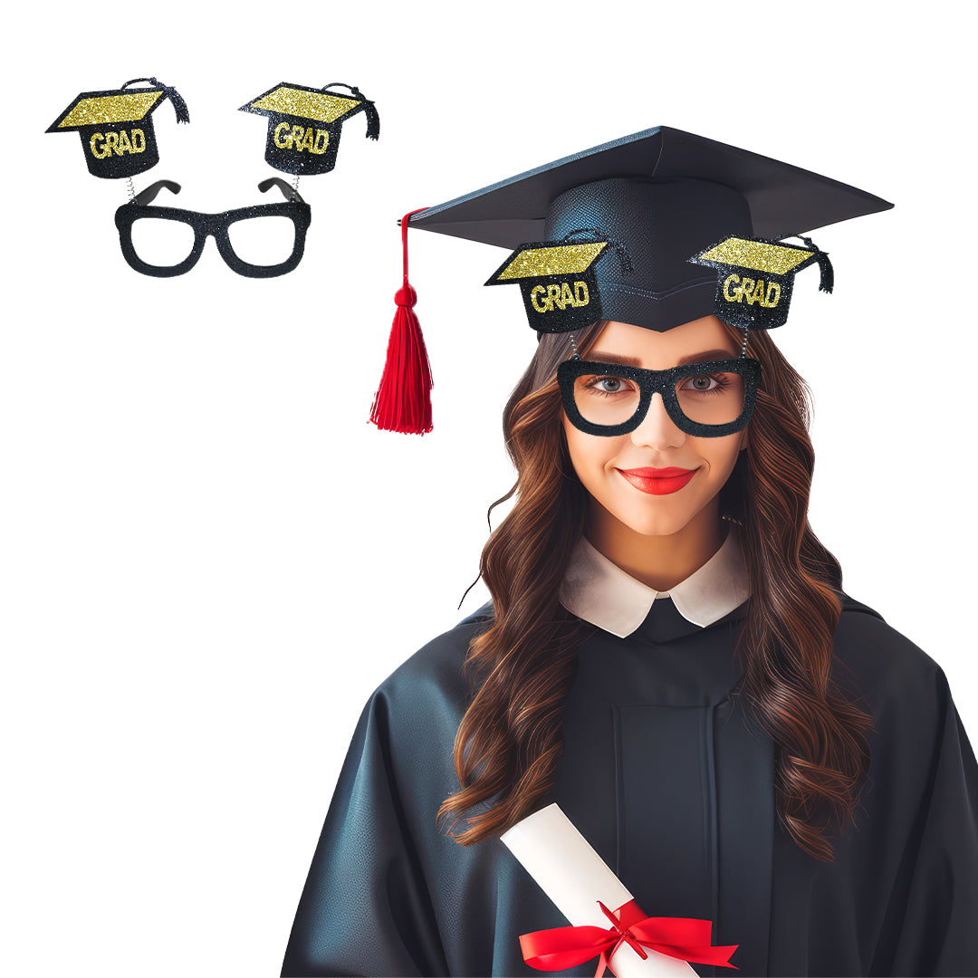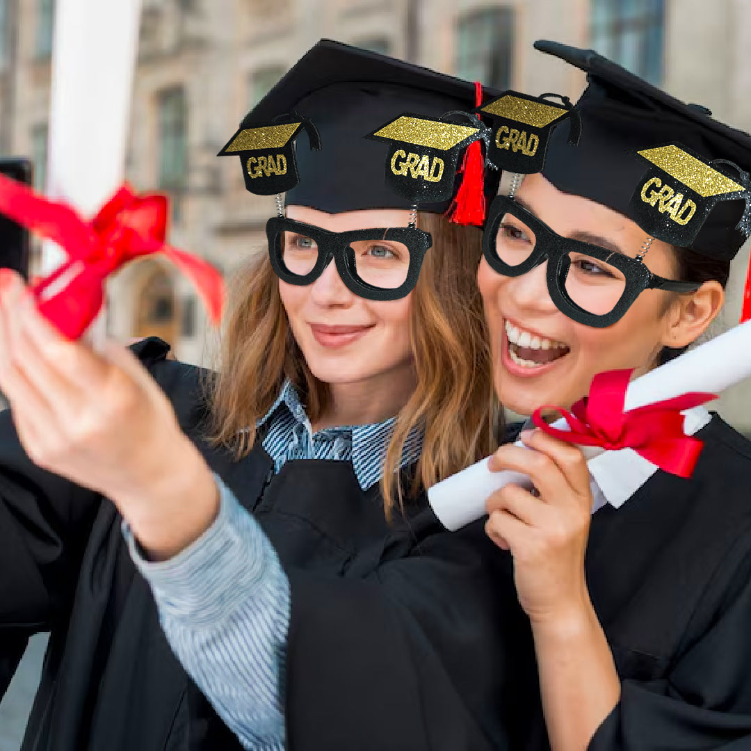 Both-Sided Glitter Design: Designed with glittery black and golden color on both sides, these glasses add sparkle and glamour to every photo. The vibrant shimmer ensures they stand out beautifully in any lighting—ideal for both daytime and evening graduation celebrations.