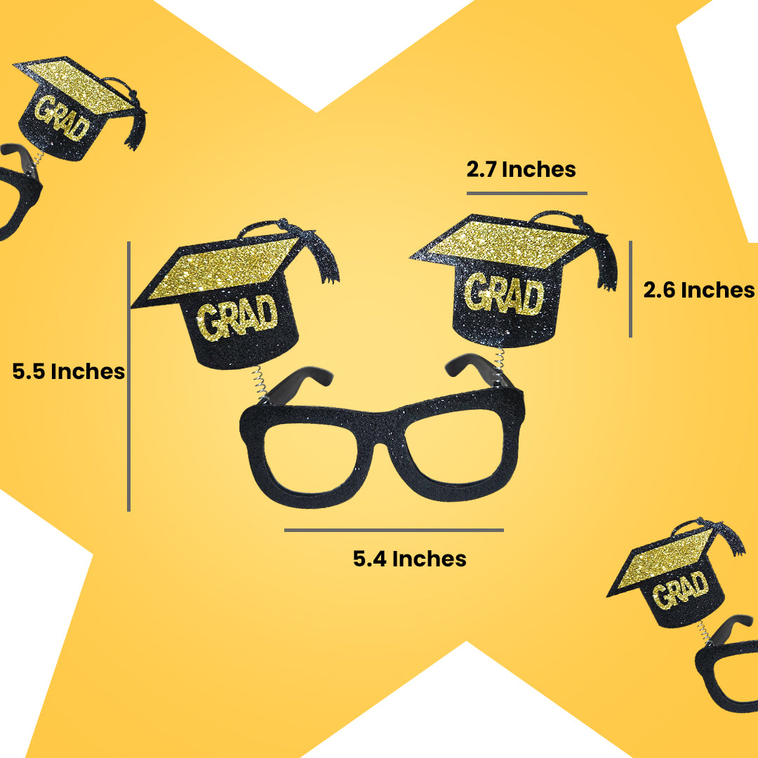 Fun Scholar Cap & Spring Popper Detail: Each pair comes adorned with a mini scholar cap and spring popper on top, adding a playful graduation flair. The fun design element makes these glasses even more attractive and exciting for party-goers of all ages.