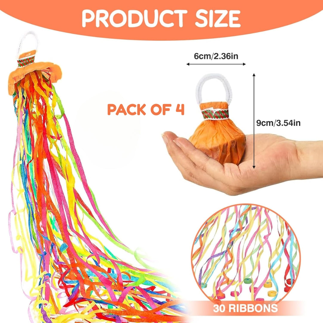 Hand Throw Streamers with Colorful Ribbons for Party Favors - 4PC
