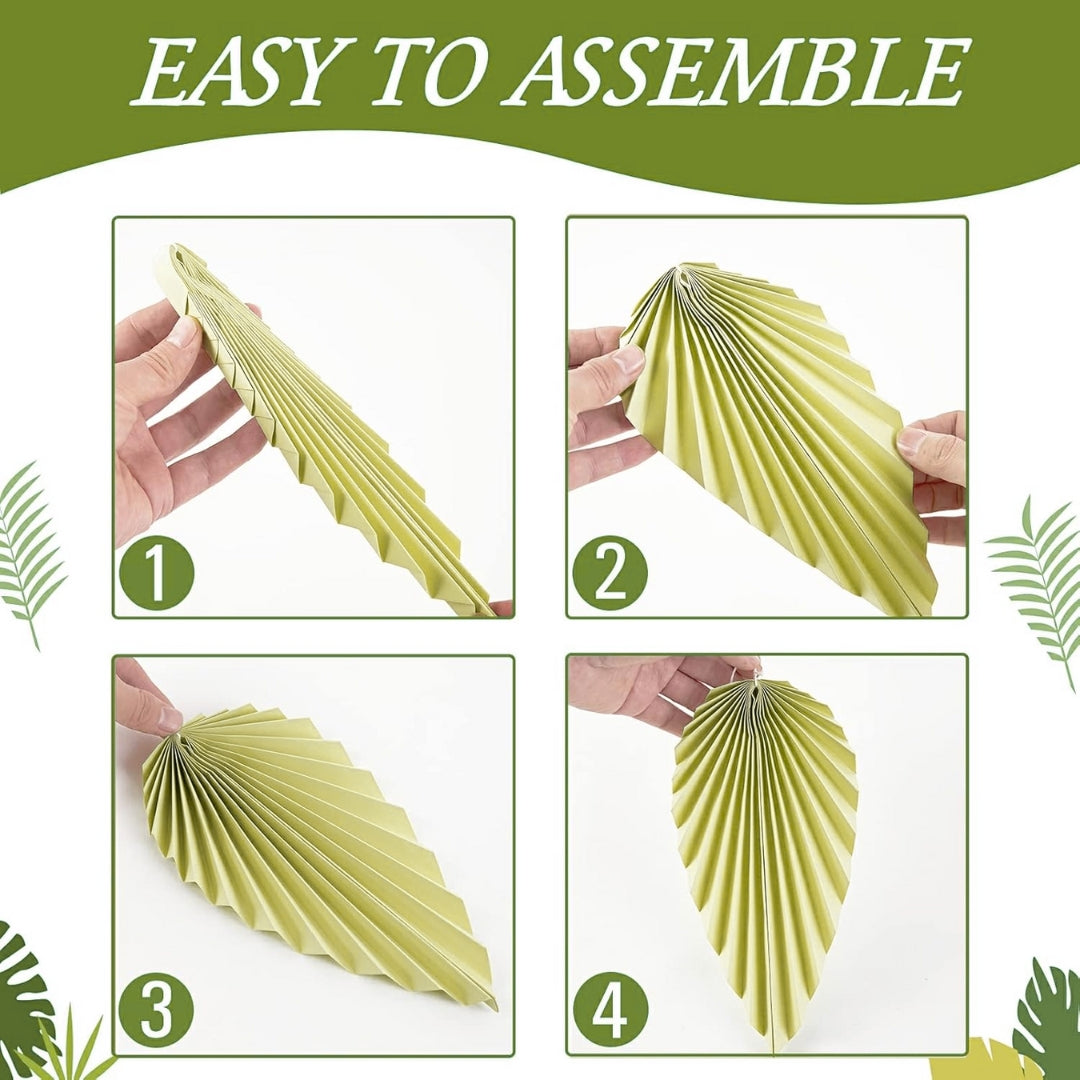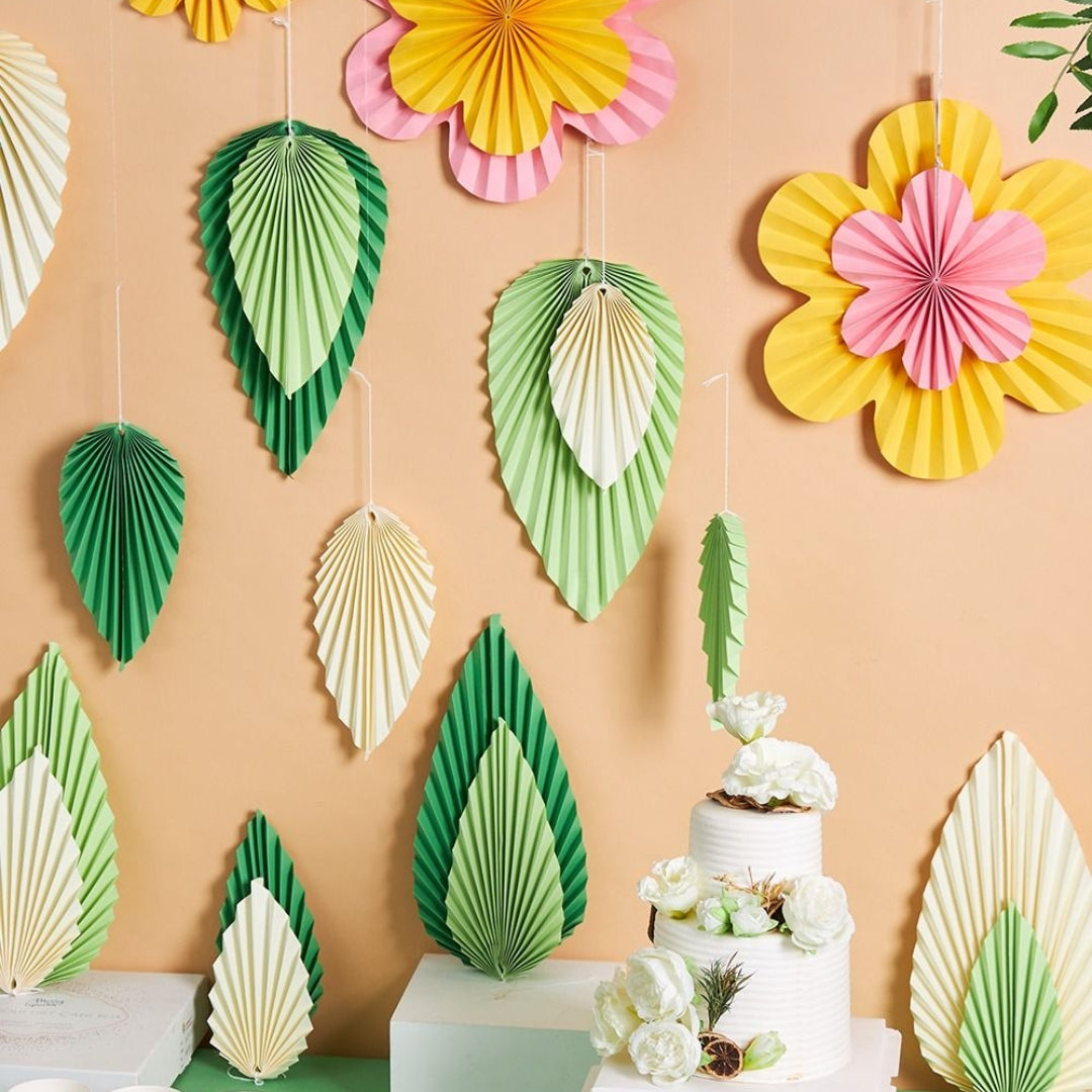 High-Quality Paper Material: Crafted from durable, premium-grade paper, these fans are lightweight yet sturdy enough to maintain their shape throughout your event. The vibrant green hues are carefully selected to reflect natural foliage tones, creating an elegant yet playful visual impact. Each piece is designed to be reused when handled with care, making them a budget-friendly choice for party decorators.