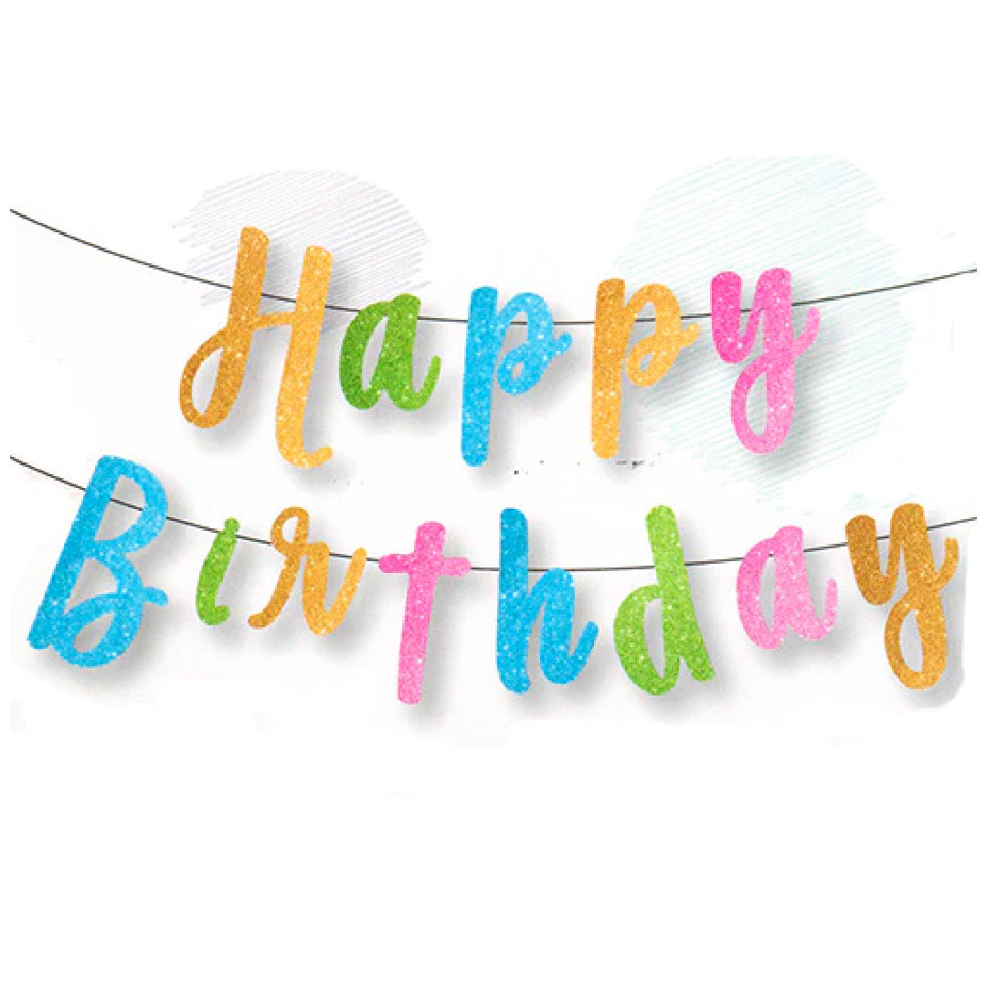 Happy Birthday Mulitcolor Glitter Cursive Banner - 1PC