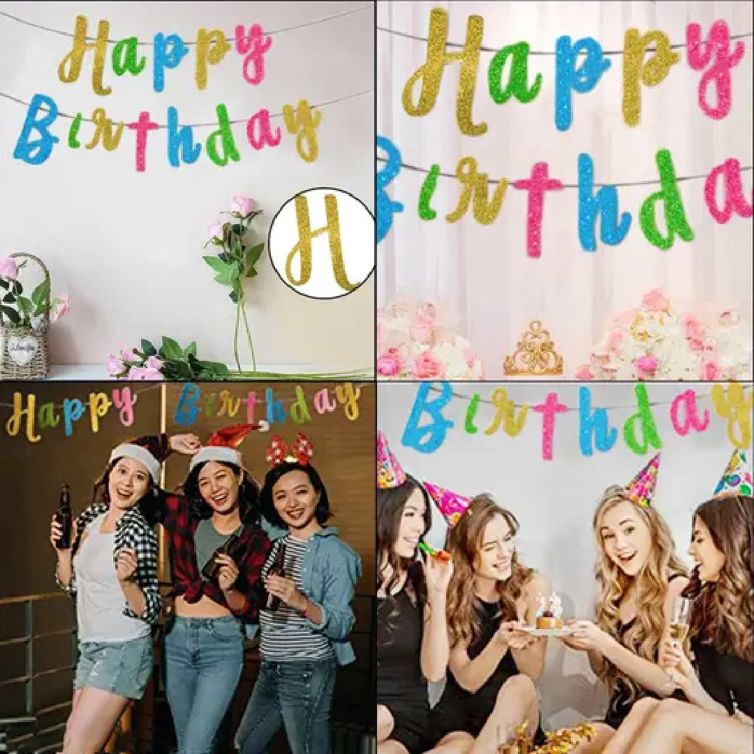 Elegant Cursive Design: The banner spells out “Happy Birthday” in a beautiful, flowing cursive font, adding a touch of sophistication and charm to your celebration.