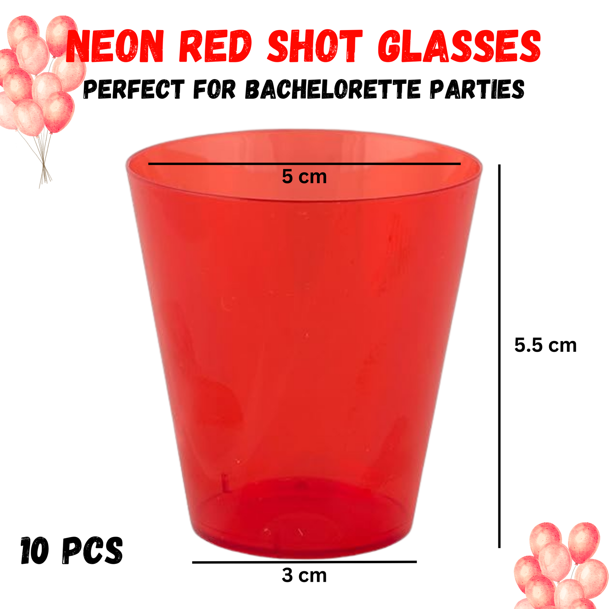 Elevate any party with our Wanna Party Pack of 10 Reusable Neon Red Shot Glasses. These durable shot glasses are perfect for bachelorette parties, Christmas, New Year's Eve, cocktail nights, or weddings. They keep the fun going while being eco-friendly. Cheers to a good time!