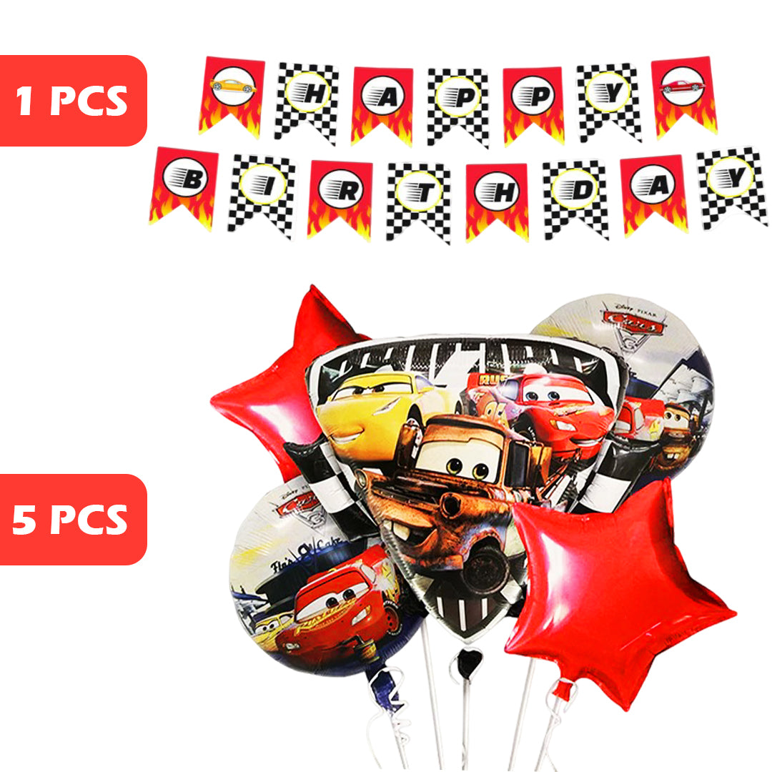 Racing Car F1 Theme Party Banner & Balloons Combo - 6PC