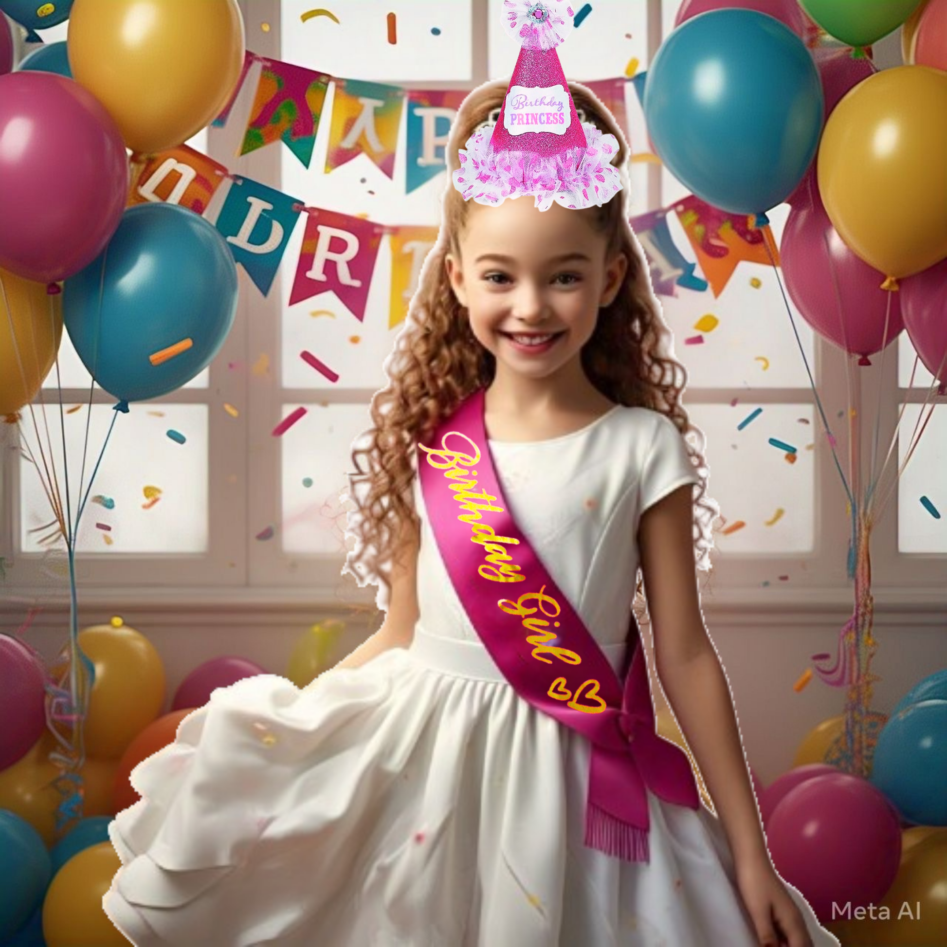 Gold Foil Accent: The sash features bold "Birthday Gilr" text in eye-catching gold foil, giving it an elegant, celebratory feel.