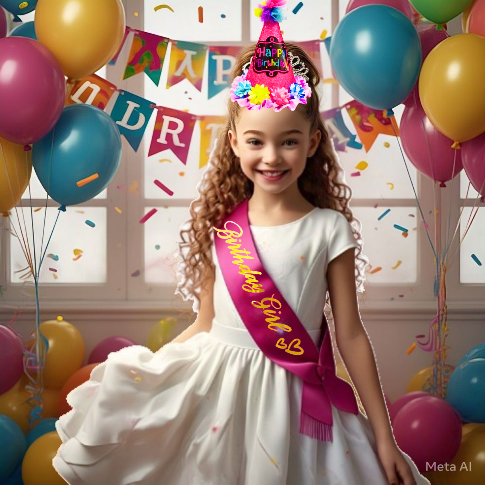 Gold Foil Accent: The sash features bold "Birthday Gilr" text in eye-catching gold foil, giving it an elegant, celebratory feel.