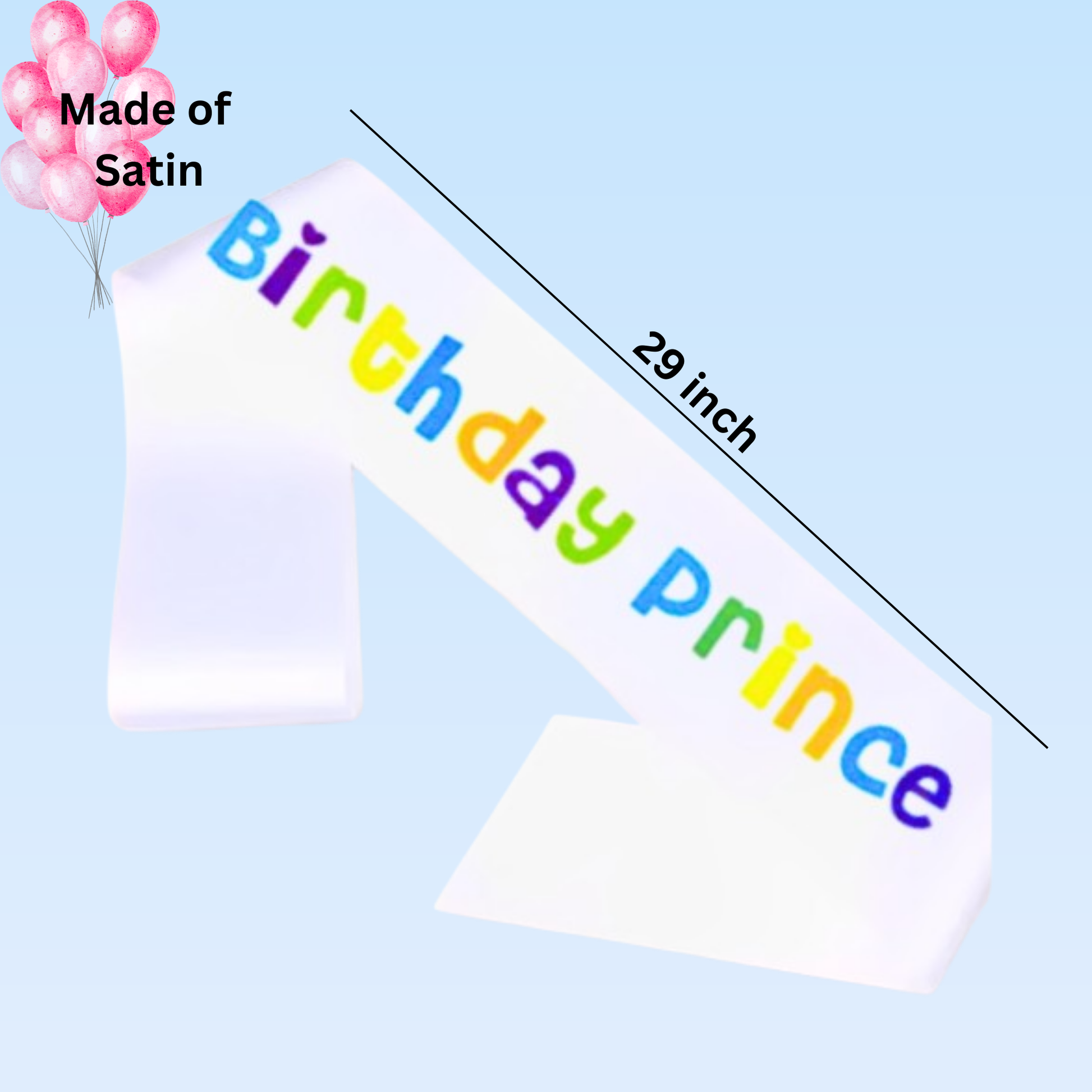 Birthday Prince Sash: The white satin birthday sash features "Birthday Prince" text, adding a royal and stylish flair to the outfit.