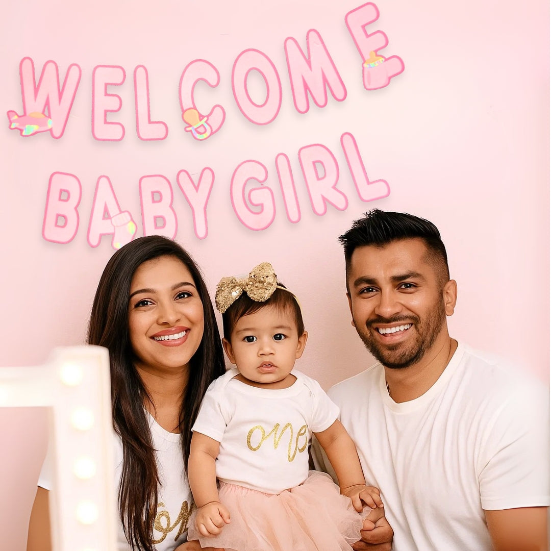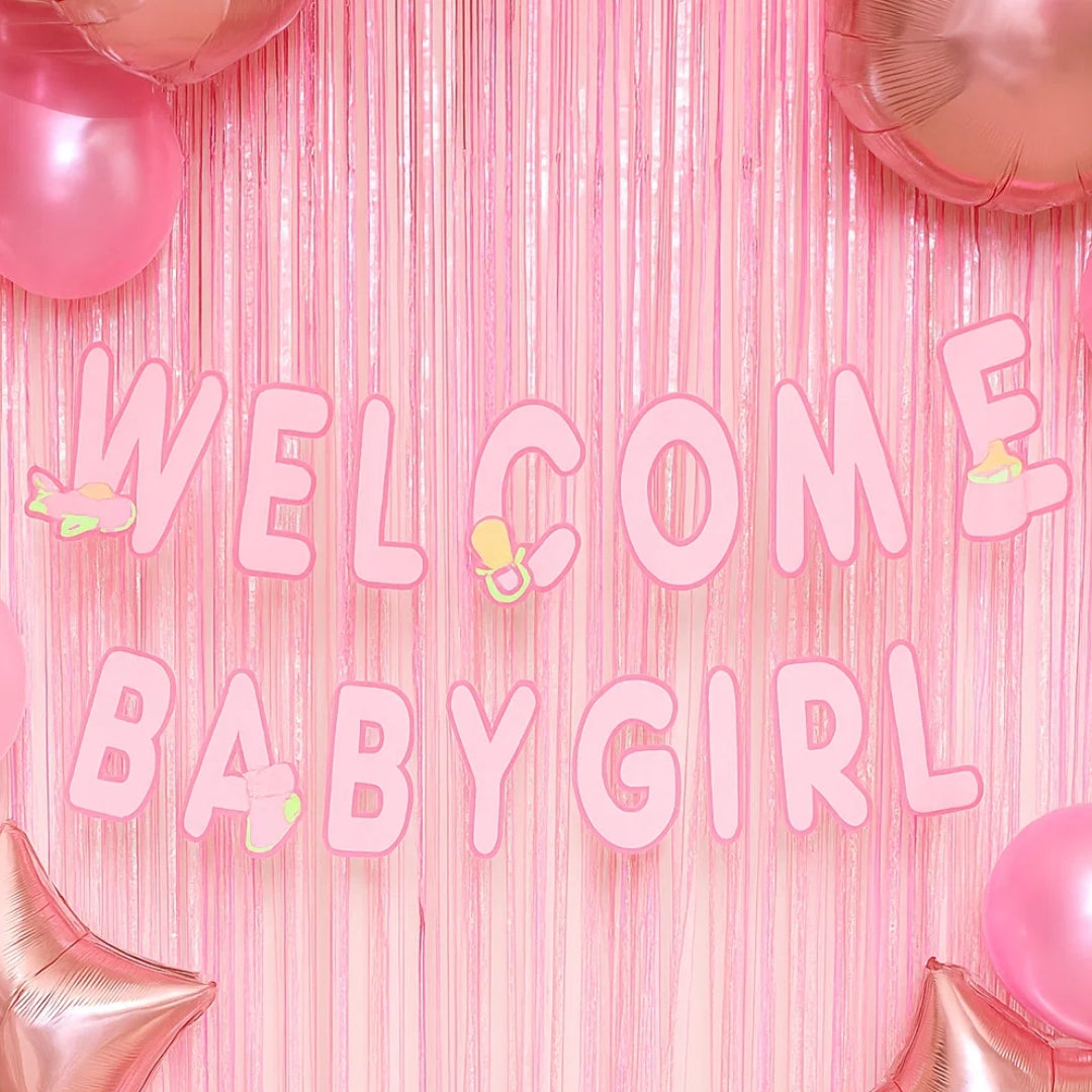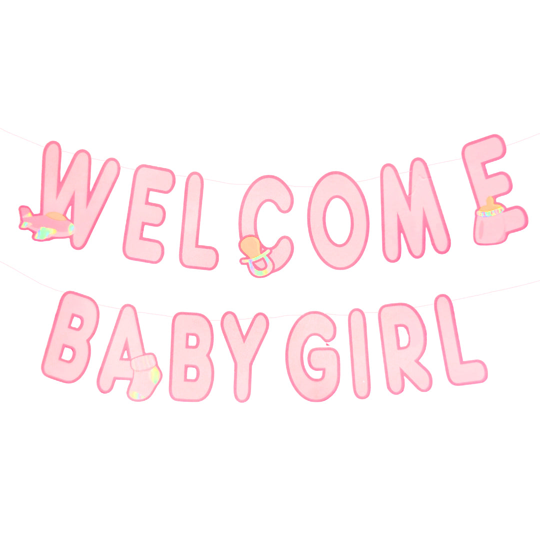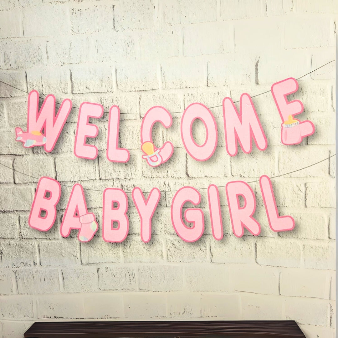 Adorable Lettering & Design: The phrase "Welcome Baby Girl" is displayed in bold, easy-to-read letters, often accented with baby-themed icons like teddy, socks, or tiny pacifiers for added cuteness.