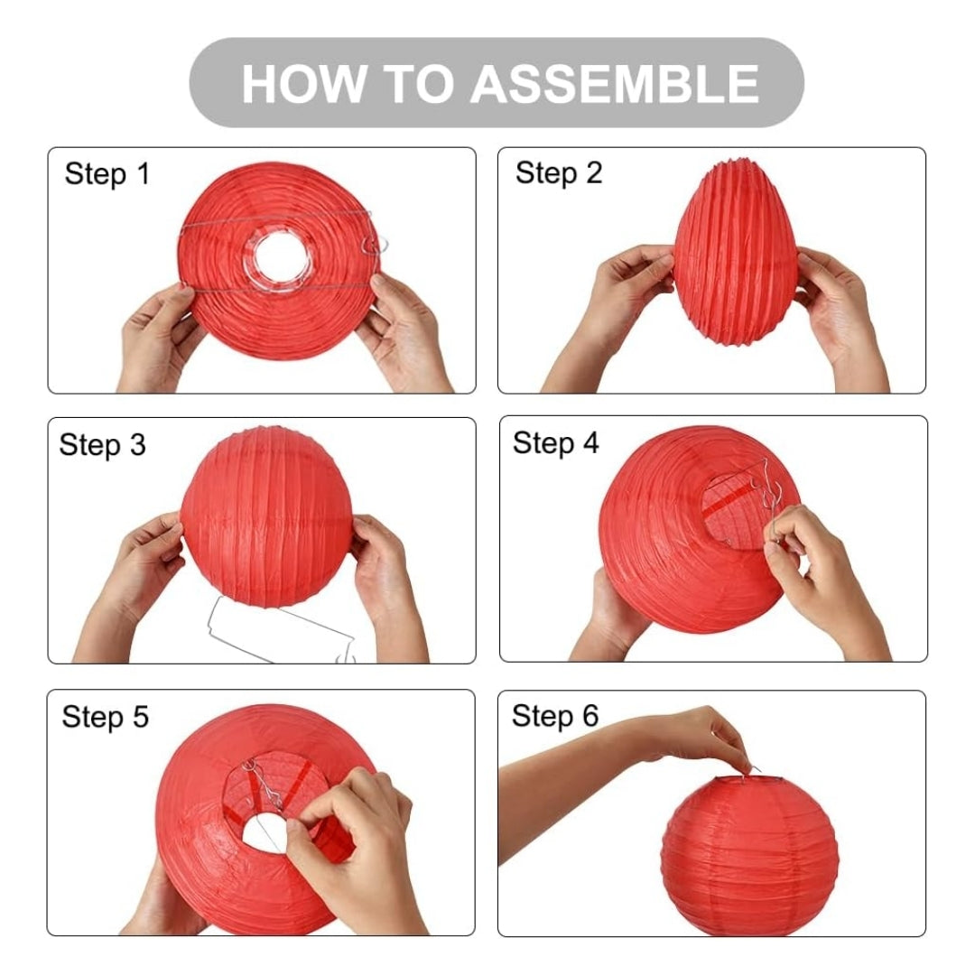 Durable and Reusable: Made from high-quality rice paper and a sturdy wire frame, these lanterns are built to last and can be conveniently folded flat for storage, making them reusable for future celebrations.