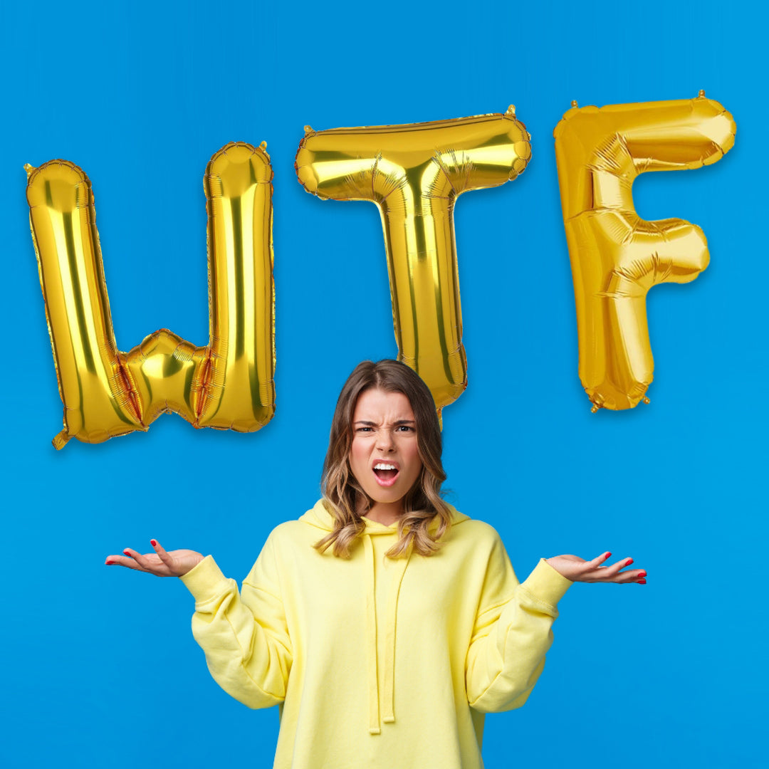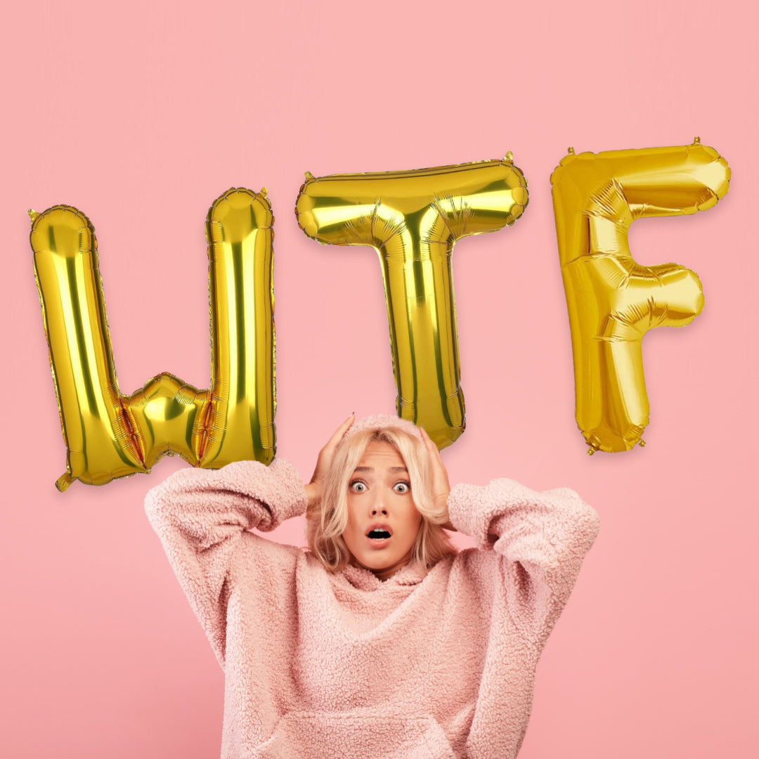 WTF Golden Foil Balloon Set - Helium or Air Filled - 40 inches - 3PC