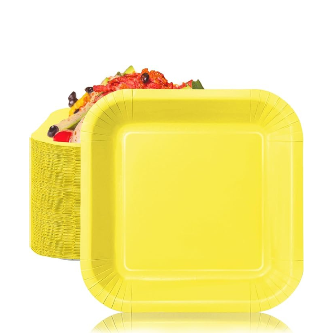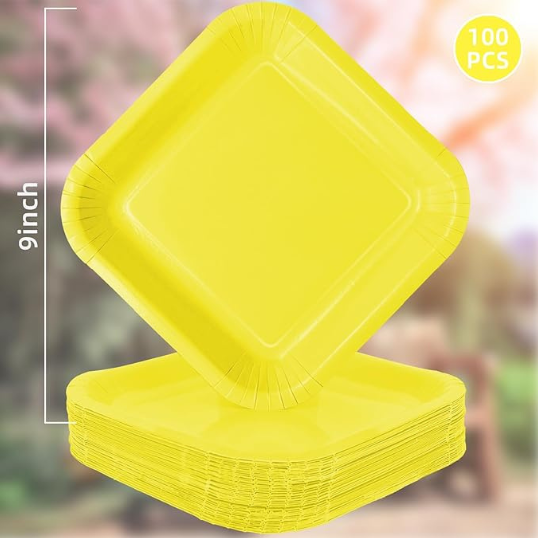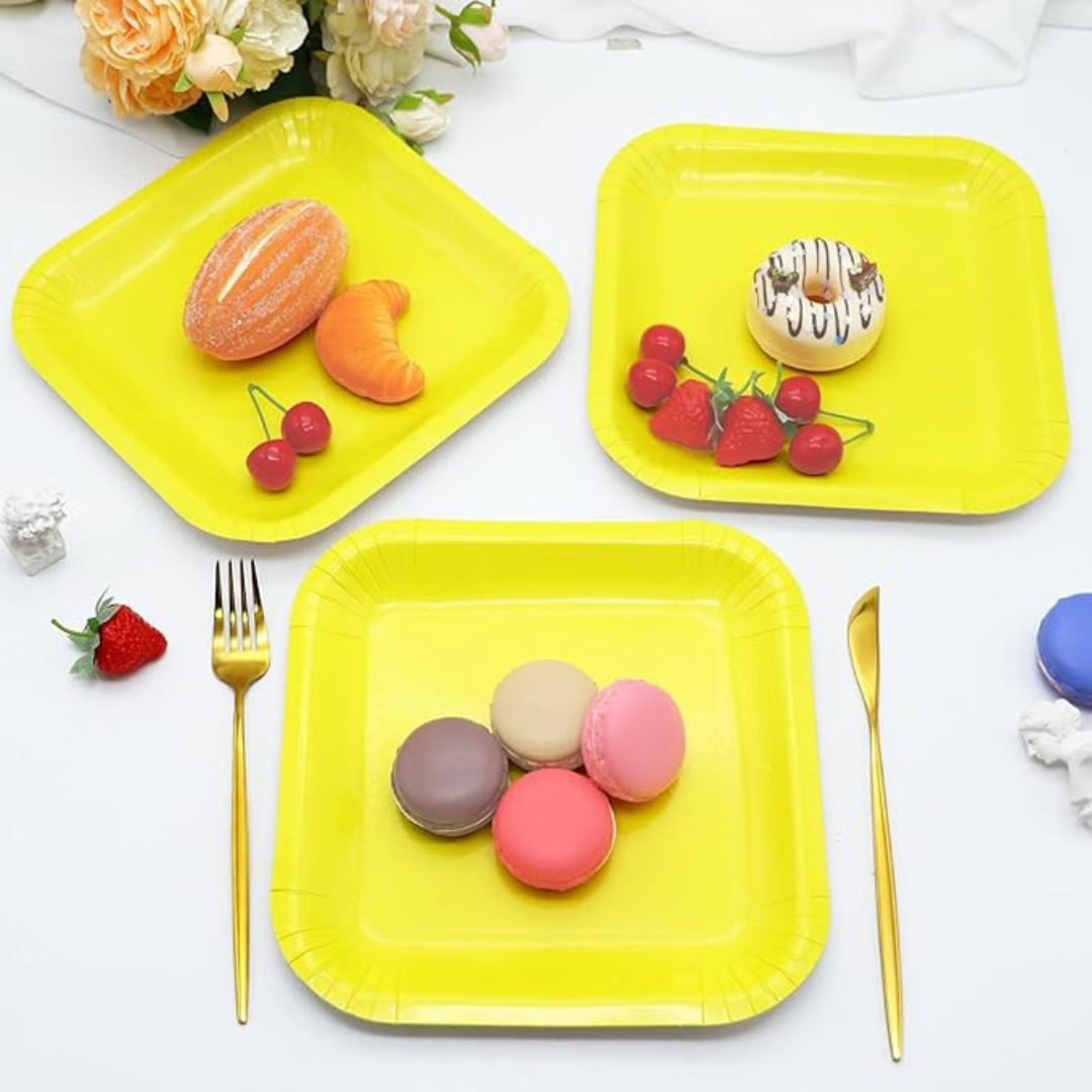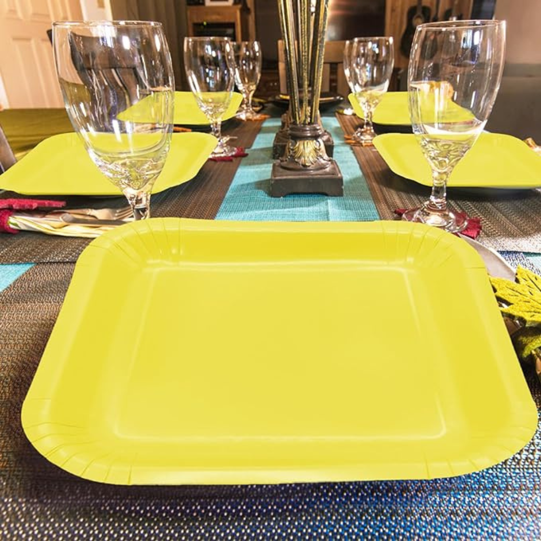 Yellow Solid Square Paper Plates - 9 inches - 8PC