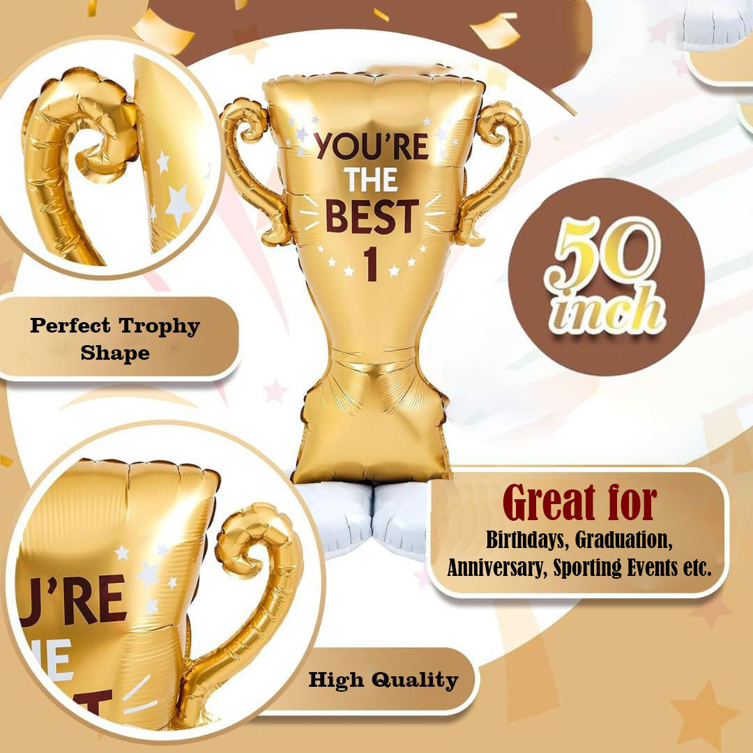 Impressive Trophy Design: Celebrate someone special with this giant 50-inch trophy-shaped Airloonz foil balloon, featuring a bold “You’re the Best” message — perfect for making anyone feel like a true champion!