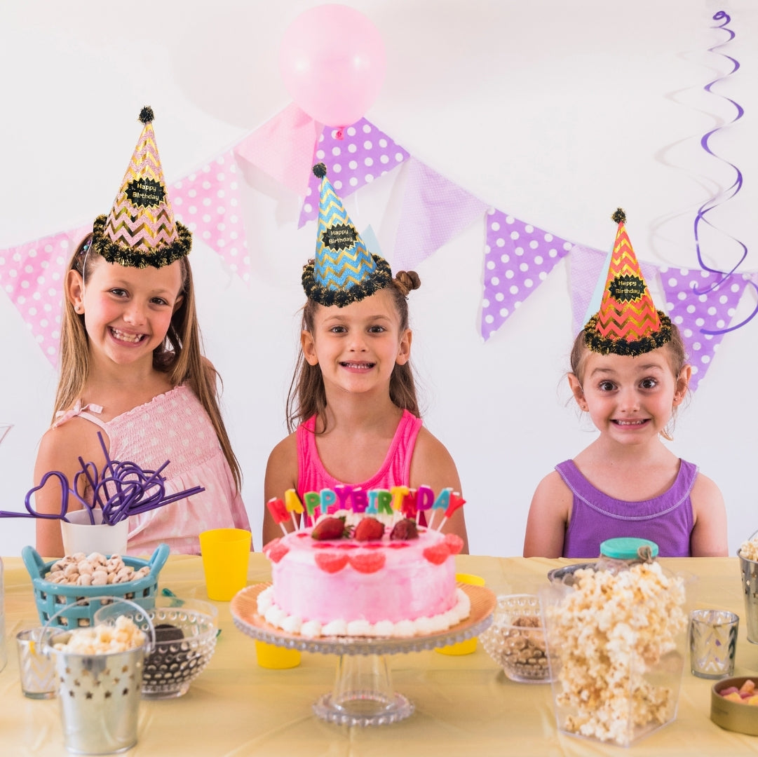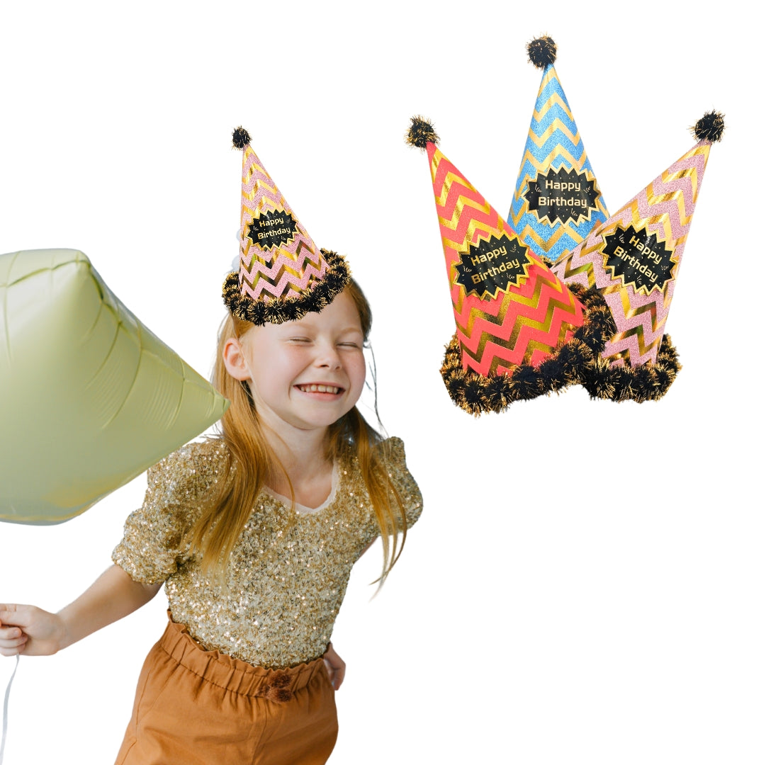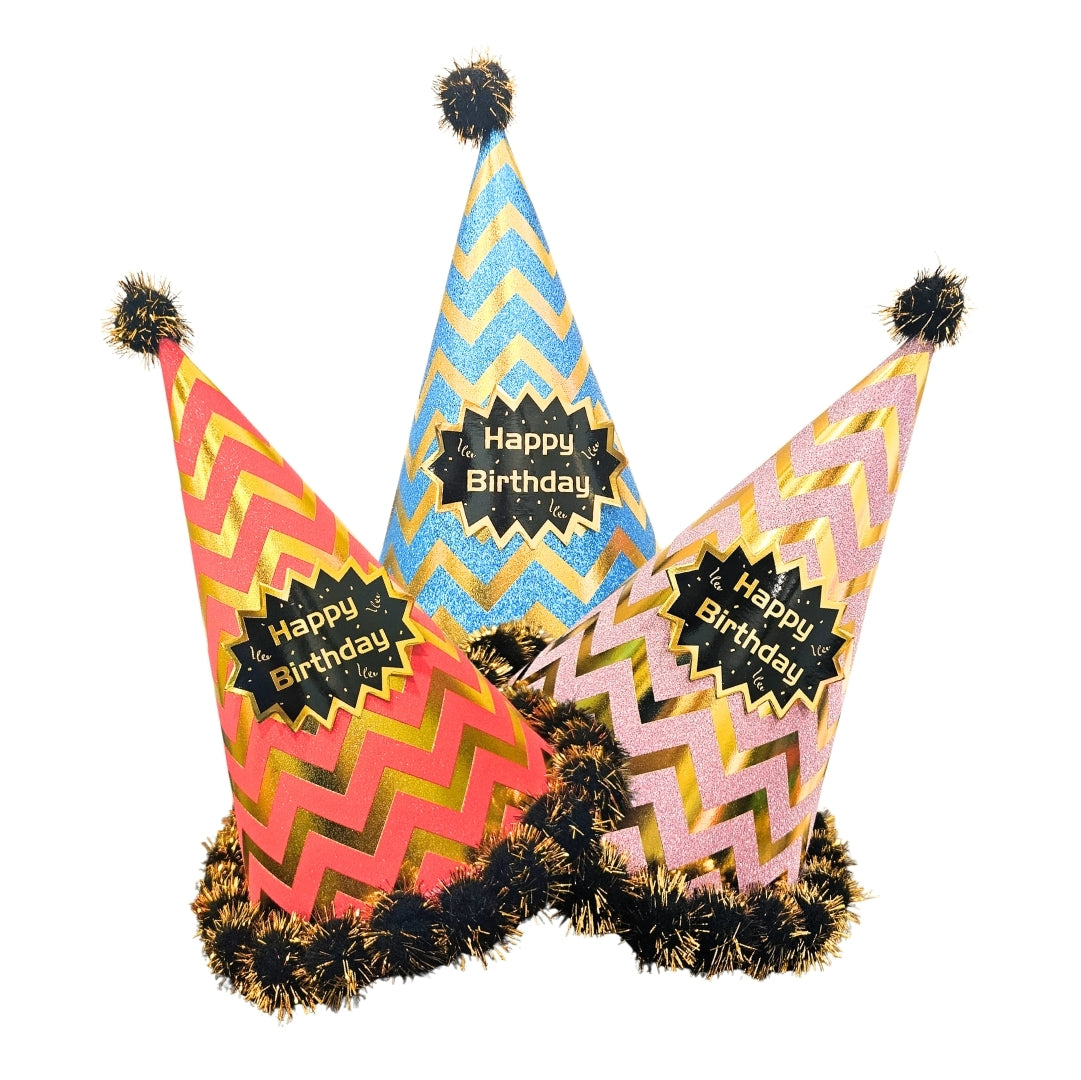 Vibrant Zig Zag Design: Each hat features a fun and festive zig zag pattern in bold colors—red, blue, and pink—making them the perfect party accessory to brighten up any birthday celebration.