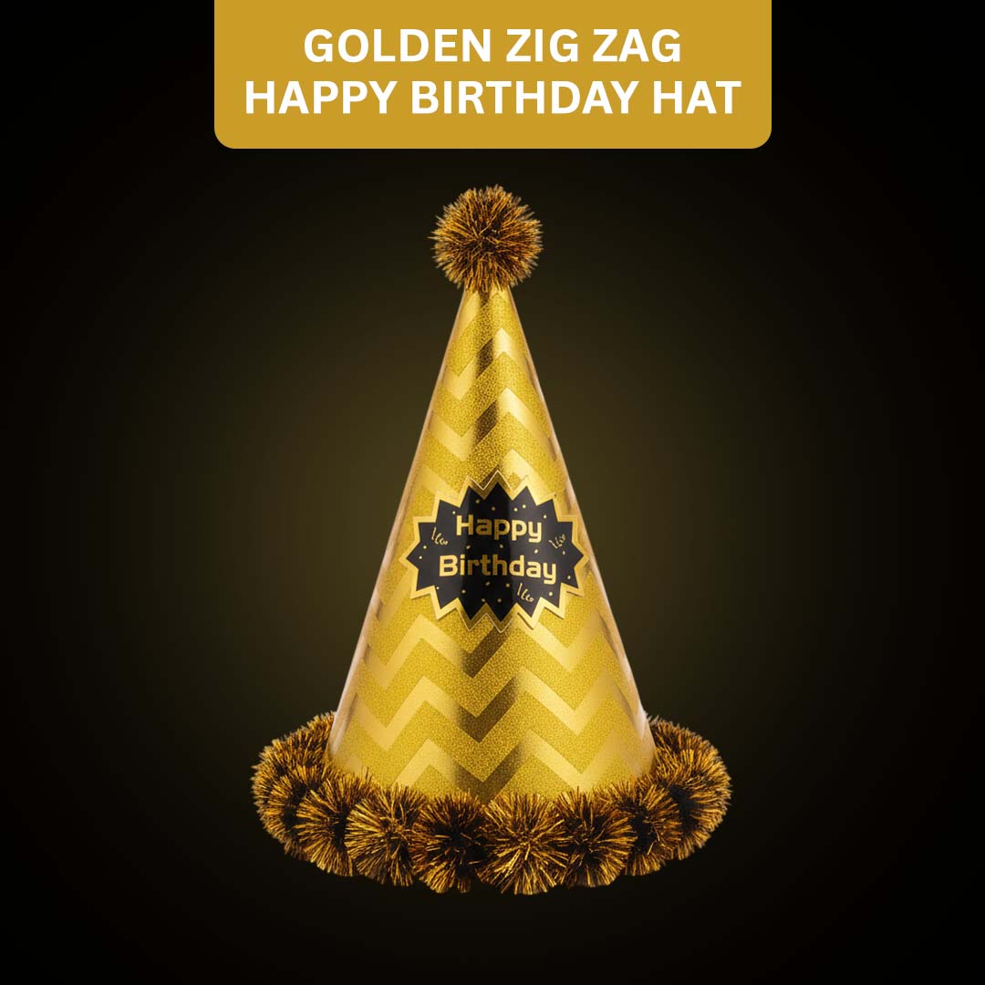 Colorful Zig Zag Design with Birthday Message: Featuring assorted bright colors, a zig-zag pattern, and a clear “Happy Birthday” message, these hats add a cheerful and festive look that suits kids’ and adults’ birthday parties alike.