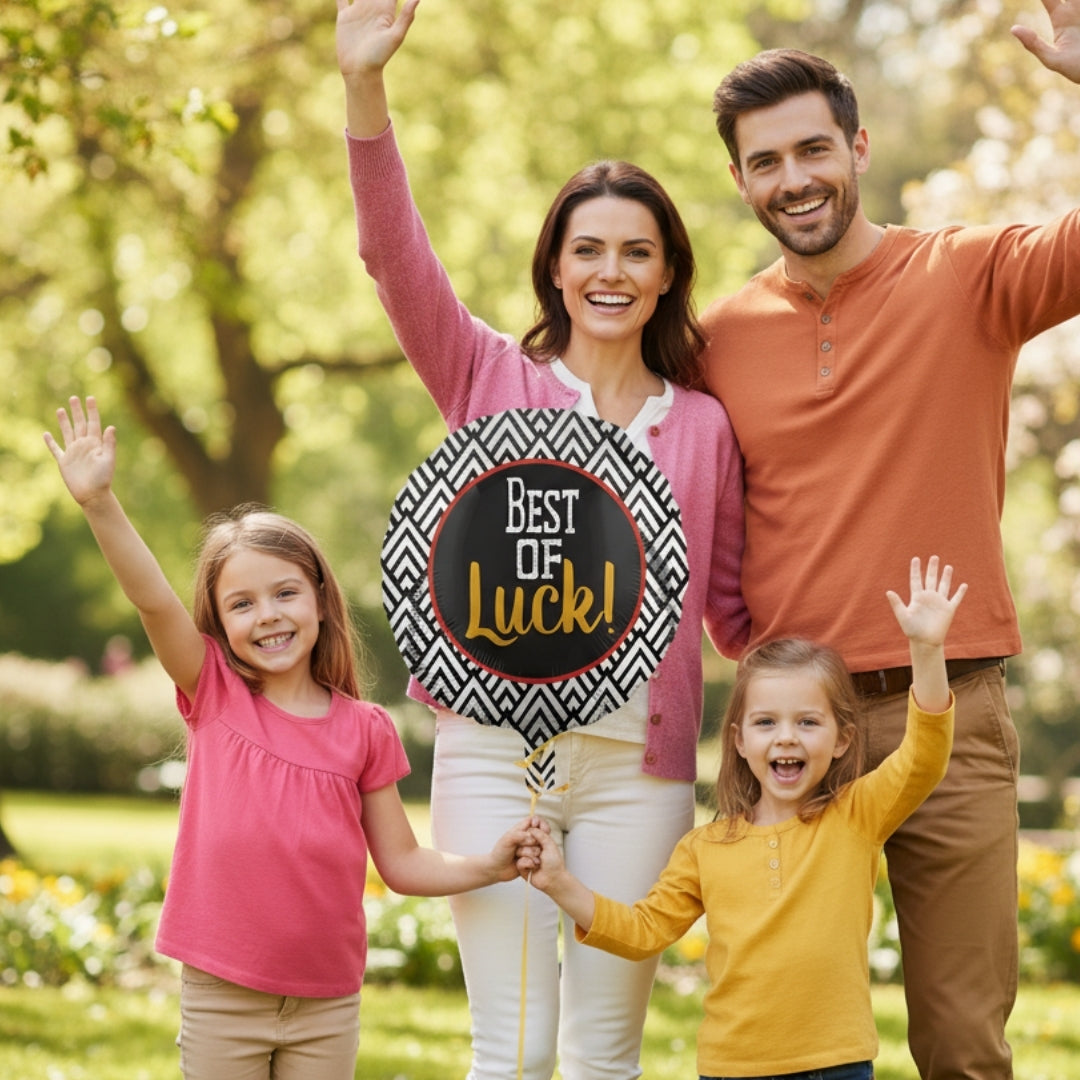 Classic Black & White Design: This balloon features a timeless and sophisticated monochrome design that complements any party theme. The bold "Best of Luck" message is set against a clean background, creating a chic and modern look that stands out.
