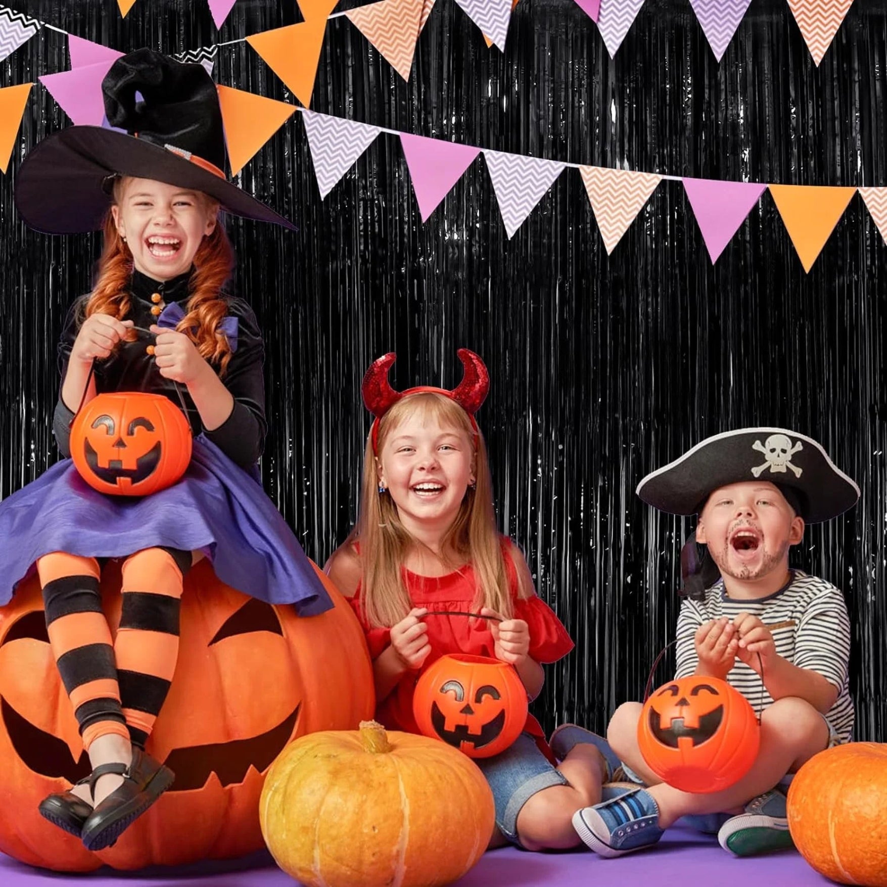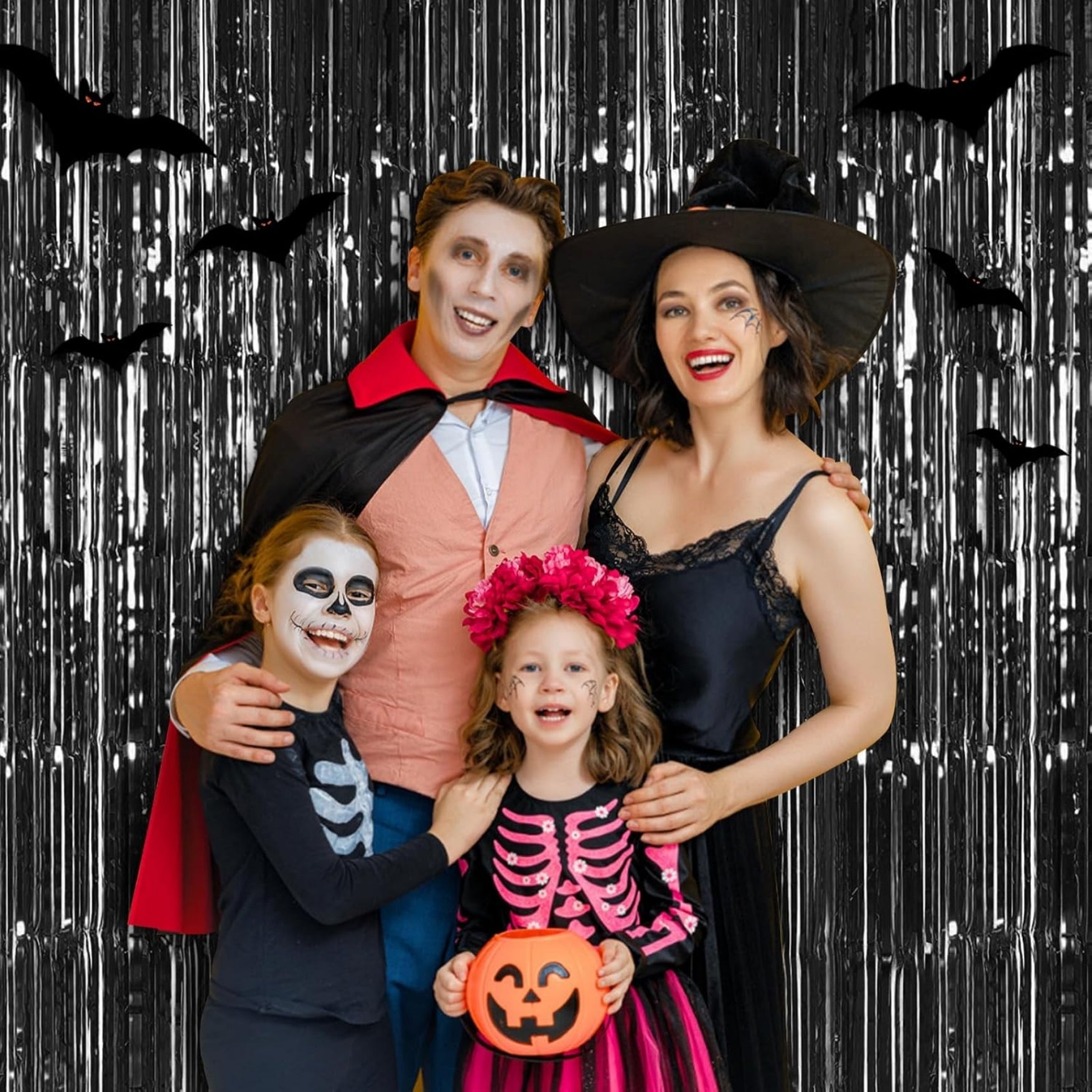 Package includes 1 black foil curtain, 3 feet width and 7 feet long for each. These shiny foil fringe curtains fit perfectly with balloons of various themes or colors and works well as a birthday backdrop or party backdrop, black backdrop.