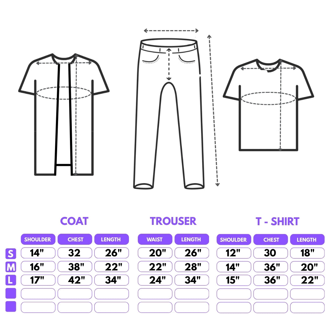 Complete Deluxe Joker Outfit – Includes a long doctor-style purple coat, matching pants, and a green vest with attached shirt and tie to replicate the iconic Dark Knight Joker look. Perfect for boys aged 8–10 years (Size L).