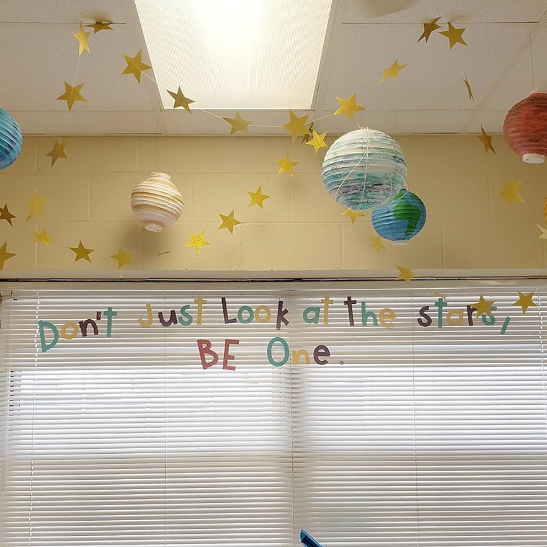Star-Shaped Design: The decoration includes star-shaped elements along the string, perfect for creating a festive and celebratory atmosphere.