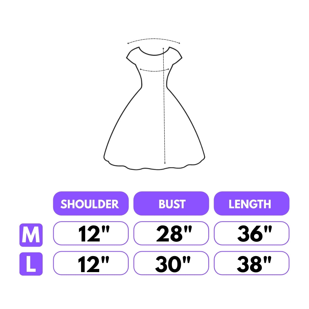 Package & Fit: The package includes one frock for with Kuromi Print. Please refer to the size chart for your kids accurate fit.
