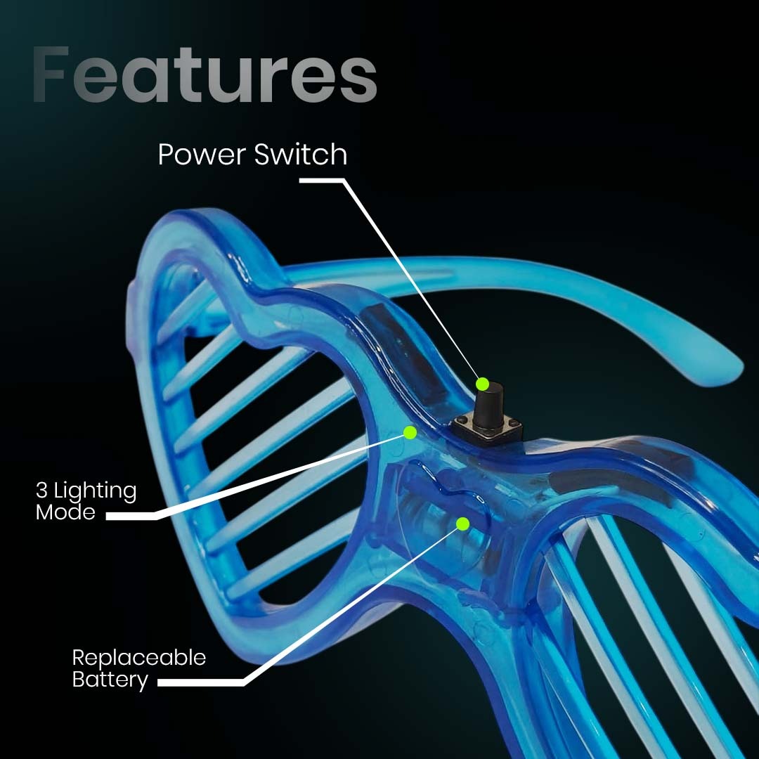 Eye-Catching Heart-Shaped Design: Stand out instantly with LED heart wired shades featuring a trendy heart shape that adds a fun and playful vibe to your party look. Perfect for making bold fashion statements at celebrations and events.