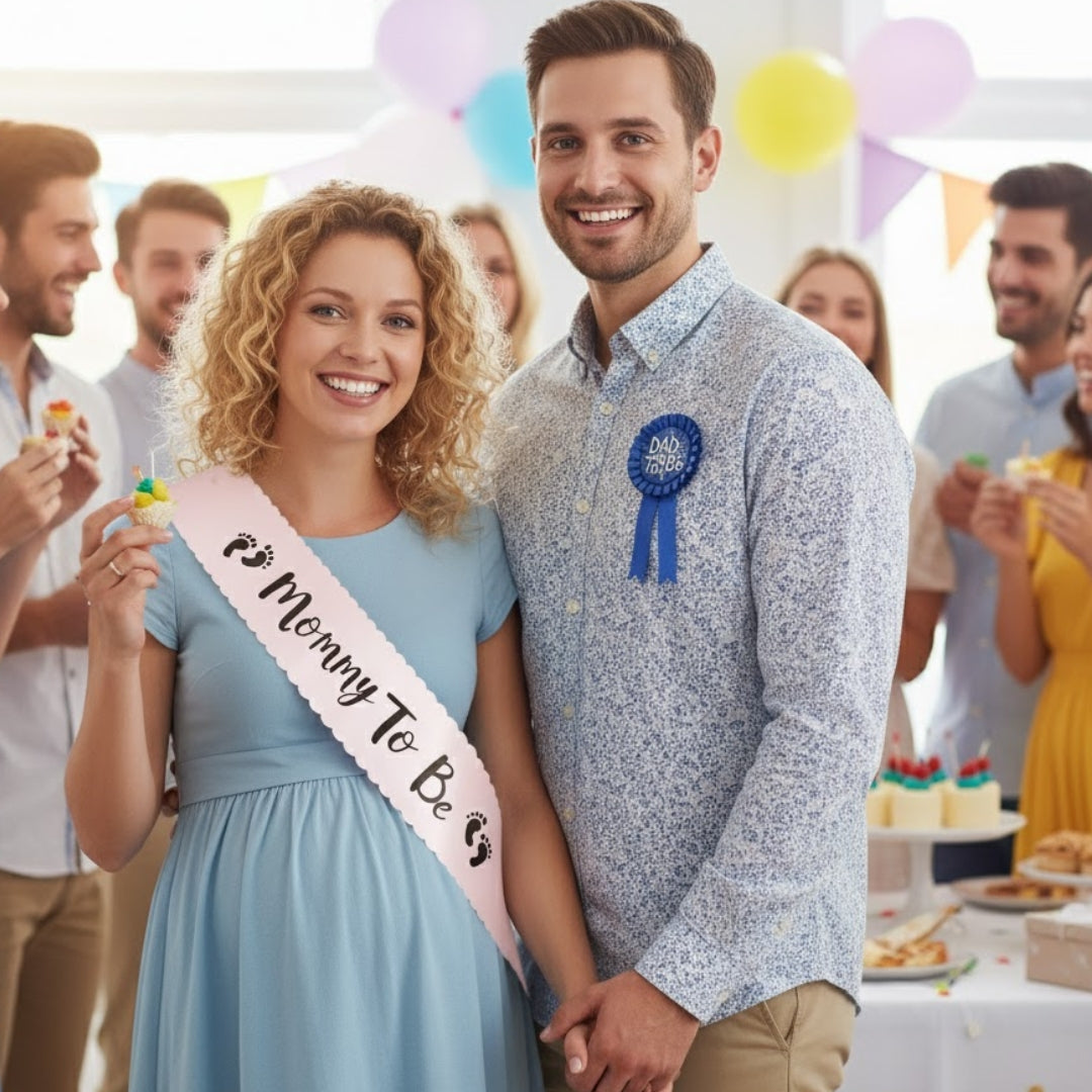 Celebrate the arrival of your little one in style with our Wanna Party Dad To Be Badge and Mom To Be Sash set! Made with high-quality materials, this decoration set adds a festive touch to any baby shower.